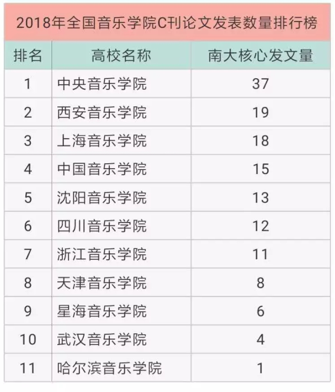3月19日,知名学术公众号“学术志”依据中国科学文献计量评价研究中心发布的《中国高校科研成果统计分析数据库》,发布了全国高校C刊论文发表数量排行榜,best3652018年度C刊论文发表量37篇,遥遥领先于全国十一所独立建制的音乐学院。