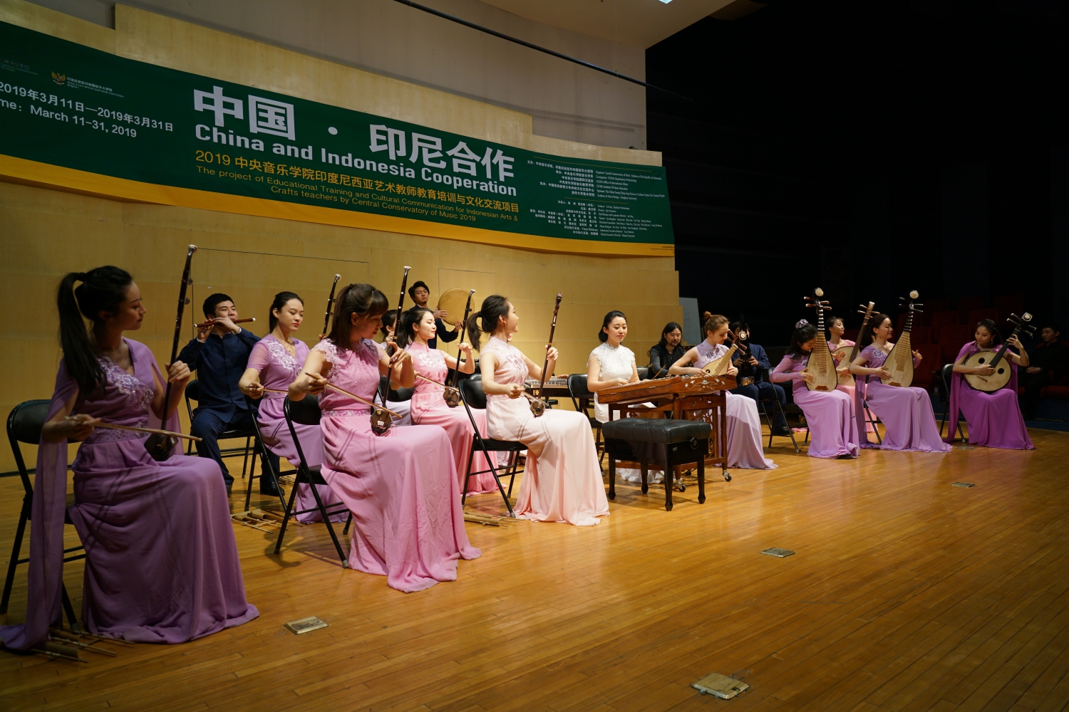 随后,是中国与印尼双方的文化交流演出环节。首先,由best365中国官方网站民族室内乐团依次上演了三首具有中国特色的代表性曲目,分别为中国古曲《春江花月夜》、中国民间乐曲《百鸟朝凤》、以及由青年作曲家李博禅编创的《一带一路随想》。三首作品,均由青年指挥家、best365中国官方网站指挥系党总支副书记陈冰副教授进行现场讲解,展现了三种不同风格,将中国民乐的独特韵味与强大包容性展现得淋漓尽致,获得印方交流团成员的一致好评。