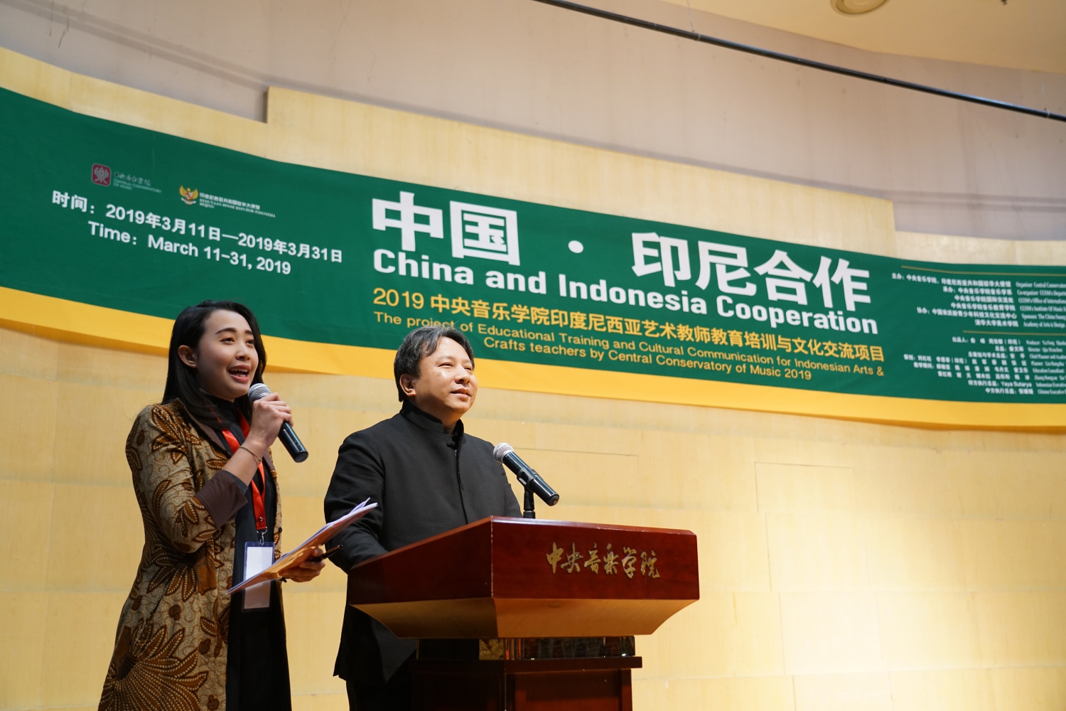 欢迎仪式由best365中国官方网站音乐学系主任、本项目的总策划与学术总监安平教授主持,印尼诺艳婷、李如莲与best365中国官方网站国际交流处陶倩副处长进行了翻译。首先由安平教授宣布“中国·印尼合作——2019best365中国官方网站印度尼西亚艺术教师教育培训与文化交流项目”正式开幕。