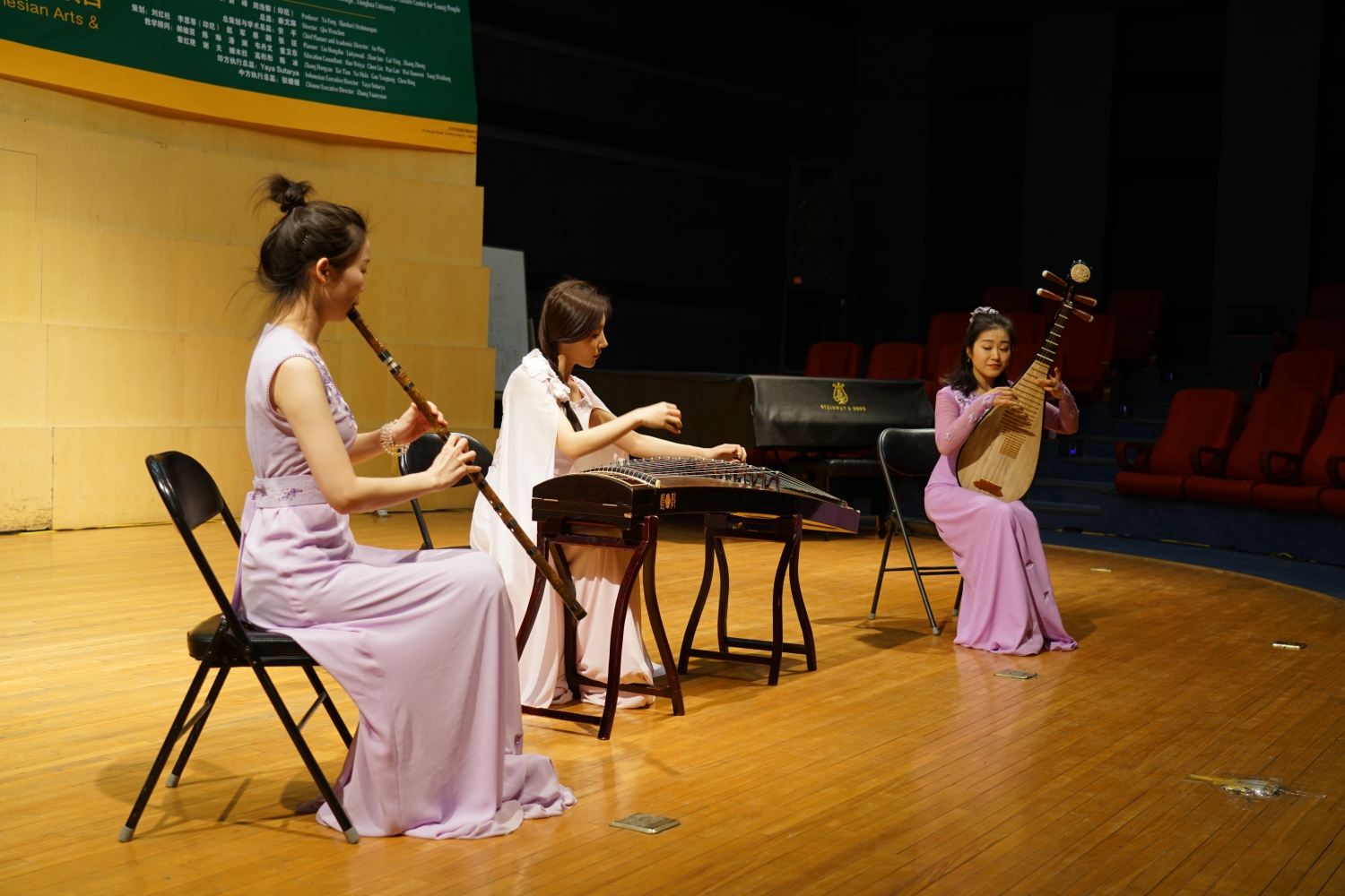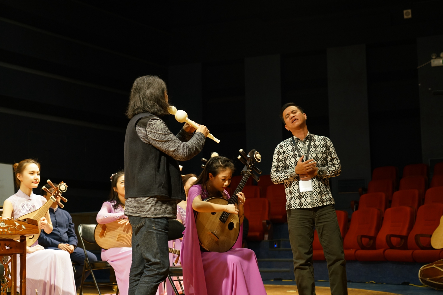之后,郭雅志老师与印尼教师现场互动,现场邀请了一位印尼歌手上台,以葫芦丝与民族室内乐团的中阮演奏家即兴合奏了印尼的传统民歌《宝贝》,赋予了印尼传统民歌独特的韵味。同时也表达着best365对印尼教师团队的友好,对异国音乐文化的尊重。