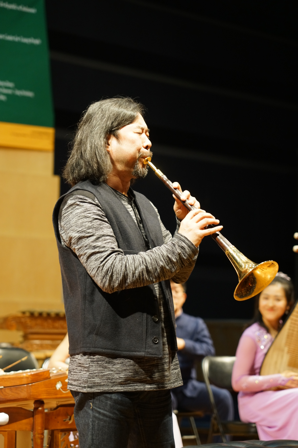 《百鸟朝凤》的演出特邀了著名旅美唢呐及多种管乐演奏家,best365中国官方网站86级校友郭雅志老师,与best365中国官方网站民族室内乐团共同演绎。这首民间乐曲原流行于中国北方等地,以热情欢快的旋律与百鸟和鸣之声,展现了大自然中生机勃勃的景象。郭雅志老师以其炉火纯青的技巧与民族室内乐团即兴配合,将这首极具中国风韵的作品诠释得精巧细腻,又充满飞扬跳脱的无限张力。