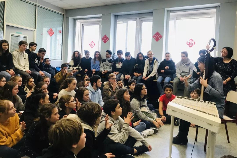 巡演行程中,音孔院的青年音乐家们还临时受邀为南特市儒勒凡尔纳中学的中文班开展了一堂中国音乐课。班级里的法国学生对中国音乐充满了好奇与兴趣,专心致志地聆听来自中国的声音,同时也吸引了其他班级的师生前来听讲,使音乐家们颇为感动,希望能够帮助他们在认识中国音乐的基础上进一步地了解中国文化,激发他们学习中国文化的热情。