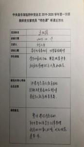 通过特色课,邀请各领域专家学者开展讲座内容涉及政治、安全、国防、健康、艺术等多个领域,激发党员学习的兴趣。邀请身边老一辈教育家讲附中的故事,传承学校优良传统激发党员干部对学校的热爱和我是央音人的自豪感。通过组织党员、学生音乐下基层拓展艺术实践,树立学之所用,用之于民,为民服务的使命感。特色课上党员与学生一同学习,激发党建带团建的引领作用、激发党员先锋模范作用、教师为人师表的榜样作用,加强每位党员肩负着在人民群众中树立党的形象的责任感。每位党员参与特色课教学,对课程进行评价、提出改进、发表建设性意见,通过这种参与形式,激发党员学习的主动性和参与教育活动的积极性。