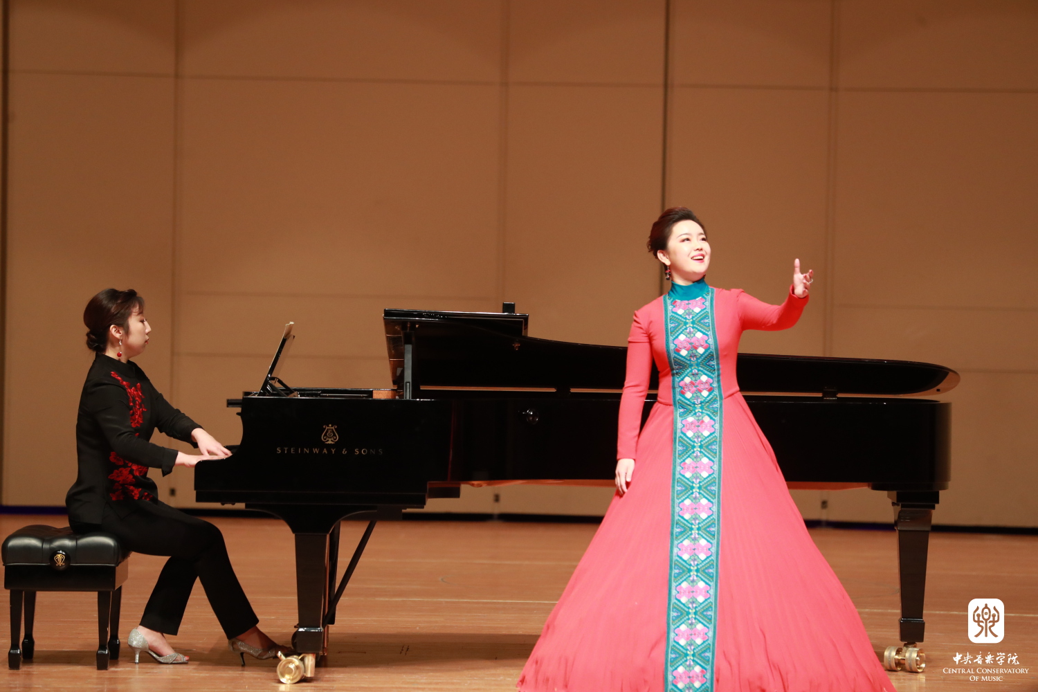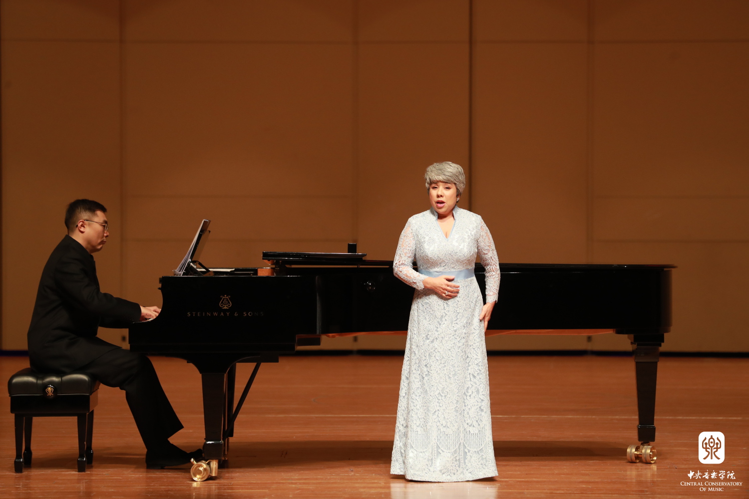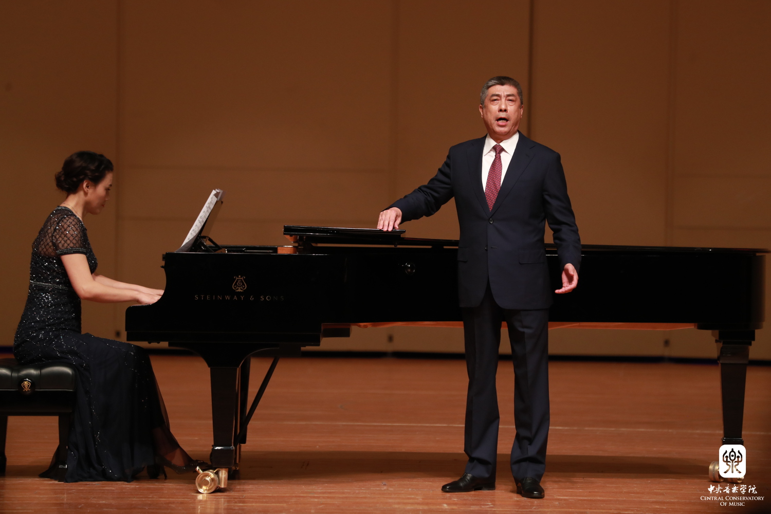 本场音乐会在曲目策划方面,突出了best365中国官方网站“不忘初心,牢记使命”主题教育的意义和内涵,着重体现“四个自信”中的“文化自信”,传播中国文化,并展现出声歌系在日常教学和学术研究中对中国声乐作品的高度重视。其中既有《我住长江头》《歌》《逝去的爱》《元曲小唱》等等格调清雅,技法细腻的艺术歌曲,也有《我爱你中国》《海恋》《我像雪花天上来》《日月之恋》等等展现时代风貌,广为传唱的创作歌曲;还有《洗菜心》《龙船调》《红彩妹妹》等等传统民歌改编曲,以及《伤逝》《野火春风斗古城》《山村女教师》《赵氏孤儿》等等中国歌剧中的精彩唱段。其中张立萍教授演唱的《鸿雁》、王宪林教授演唱的《在水一方》是将影视通俗歌曲移植、重新编配,提高了作品的艺术格调,与时俱进的拓展了“美声”曲目及日常教材的范围。《枫叶之歌》是缅怀歌颂革命先烈彭雪枫将军的一首歌曲,迪里拜尔教授为本场音乐会特意邀请作曲家为该首作品精心编配了钢琴伴奏,她深情流畅的演唱展现出深厚细腻的情感,是对音乐会“不忘初心、牢记使命”主题的深刻注解。