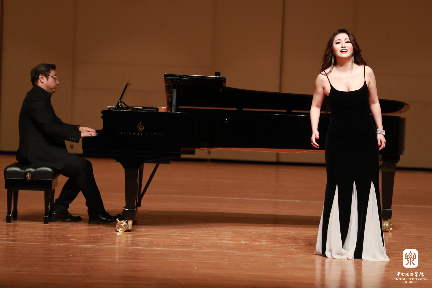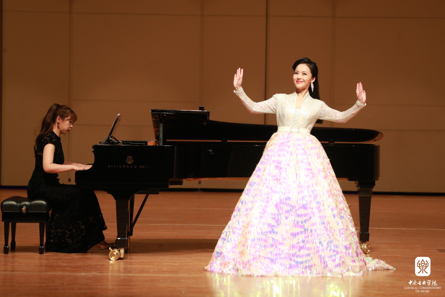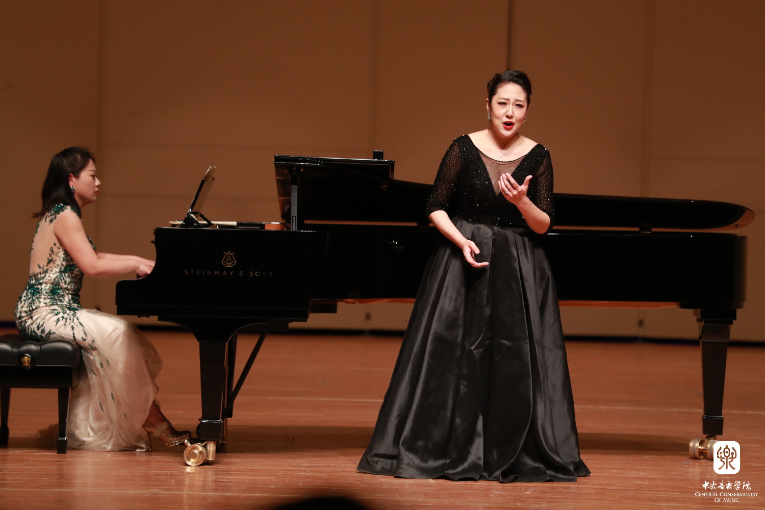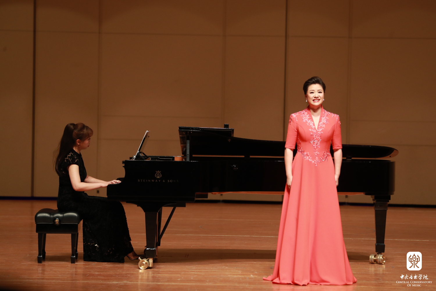 本场音乐会在曲目策划方面,突出了best365中国官方网站“不忘初心,牢记使命”主题教育的意义和内涵,着重体现“四个自信”中的“文化自信”,传播中国文化,并展现出声歌系在日常教学和学术研究中对中国声乐作品的高度重视。其中既有《我住长江头》《歌》《逝去的爱》《元曲小唱》等等格调清雅,技法细腻的艺术歌曲,也有《我爱你中国》《海恋》《我像雪花天上来》《日月之恋》等等展现时代风貌,广为传唱的创作歌曲;还有《洗菜心》《龙船调》《红彩妹妹》等等传统民歌改编曲,以及《伤逝》《野火春风斗古城》《山村女教师》《赵氏孤儿》等等中国歌剧中的精彩唱段。其中张立萍教授演唱的《鸿雁》、王宪林教授演唱的《在水一方》是将影视通俗歌曲移植、重新编配,提高了作品的艺术格调,与时俱进的拓展了“美声”曲目及日常教材的范围。《枫叶之歌》是缅怀歌颂革命先烈彭雪枫将军的一首歌曲,迪里拜尔教授为本场音乐会特意邀请作曲家为该首作品精心编配了钢琴伴奏,她深情流畅的演唱展现出深厚细腻的情感,是对音乐会“不忘初心、牢记使命”主题的深刻注解。