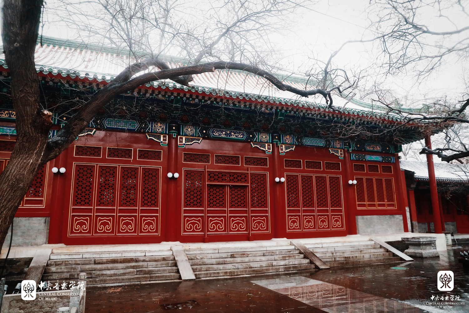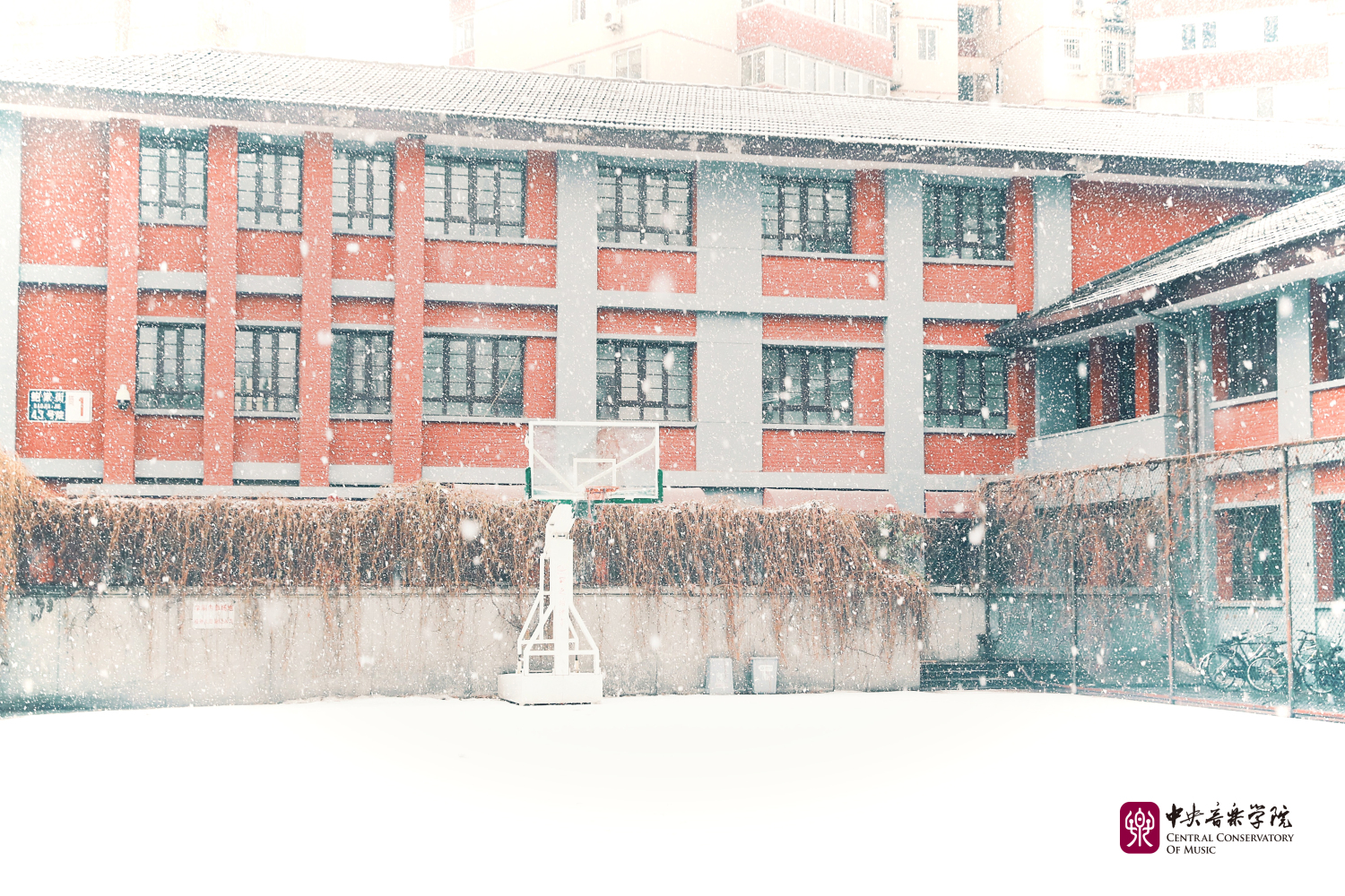 冬日的央音在纷纷扬扬的雪花中美得静谧而深沉