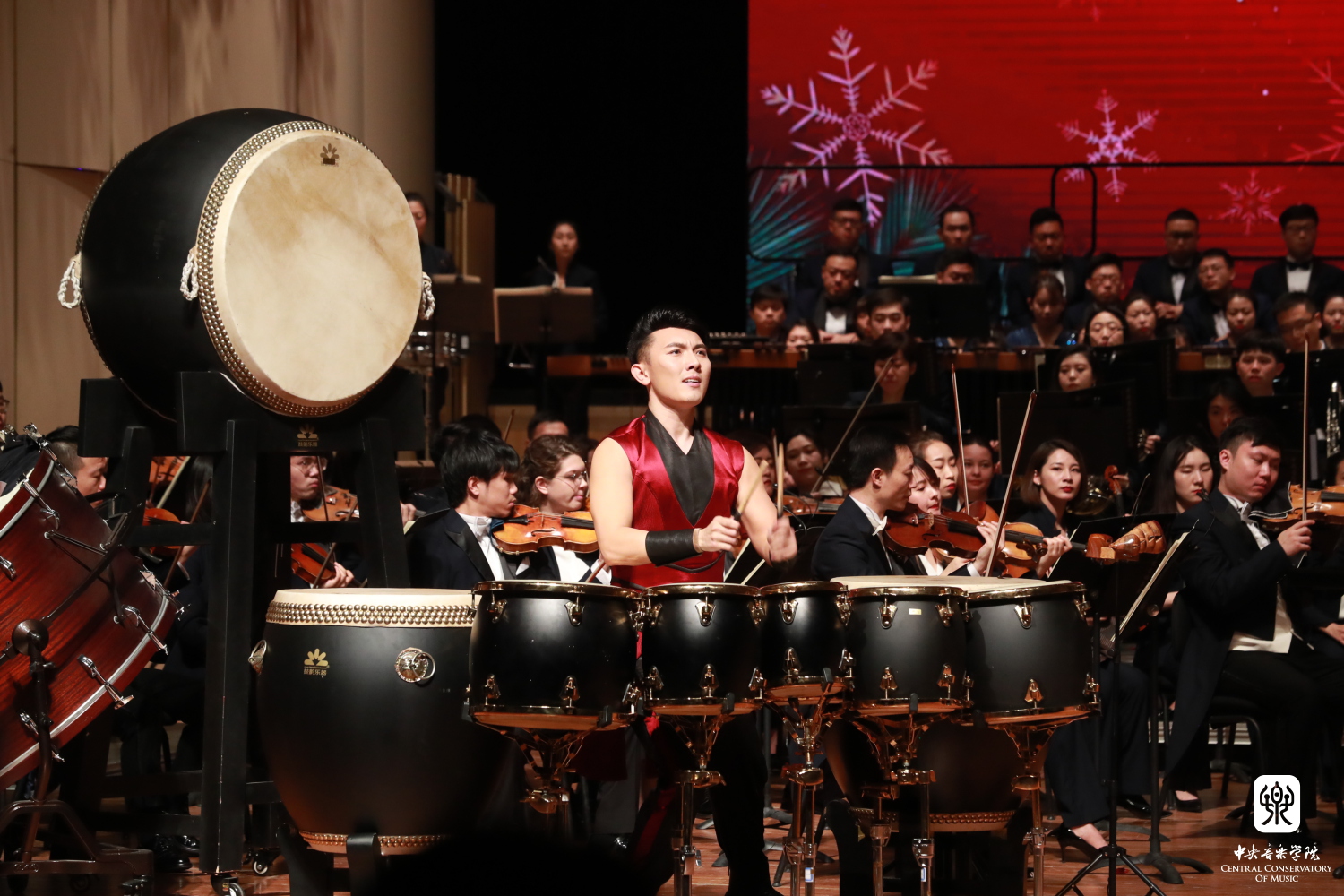 best365青年教师、打击乐演奏家尹飞携手其学生、best365中国官方网站附中三年级王庶羽同学与进击打击乐团奏响张仰胜先生作曲的《八佾》,敲响了新年的第一声锣鼓。尹飞、王庶羽师生在2019中央广播电视总台中国器乐电视大赛中分别获得了打击乐职业成年组冠军和职业少年组冠军,他们与其他鼓手们在音色与演奏上的默契配合与精彩演绎,营造出排山倒海的气势,让现场所有听众领略到了古代君王大气磅礴的出行场景。