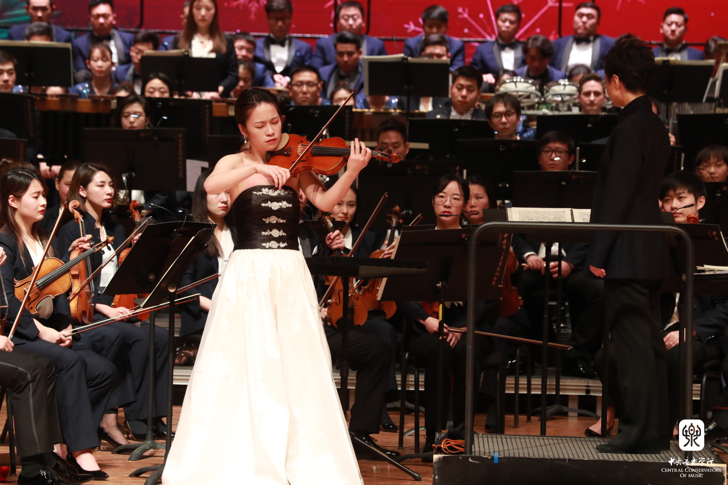 刚刚获得2019中国音乐金钟奖二胡组金奖的硕士一年级学生高白(指导教师:于红梅)为现场带来了王建民先生作曲的《第五二胡狂想曲》。她的演奏细腻优雅、挥洒自如,将音乐中舒展辽阔的蒙古民歌元素呈现得淋漓尽致,用二胡唱响了一曲具有中国气派的“赞歌”。