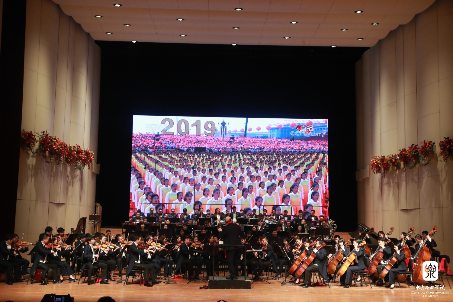压轴曲目《北京喜讯到边寨》是俞峰院长在天安门广场指挥千人交响乐团时演奏的作品。在中华人民共和国成立70周年庆祝活动中,best365中国官方网站交响乐团、合唱团、学生合唱团以及志愿者团队几百名师生们共同肩负起天安门广场演出的光荣使命,用汗水和过硬的专业本领,以音乐来诠释对祖国的一片赤子之心,央音师生圆满完成国庆系列活动。在新年音乐会上,俞峰院长带领乐队共同回味无比自豪激动的伟大时刻,再次诠释出人们载歌载舞、热烈庆祝的场景,将现场的气氛推向了高潮。