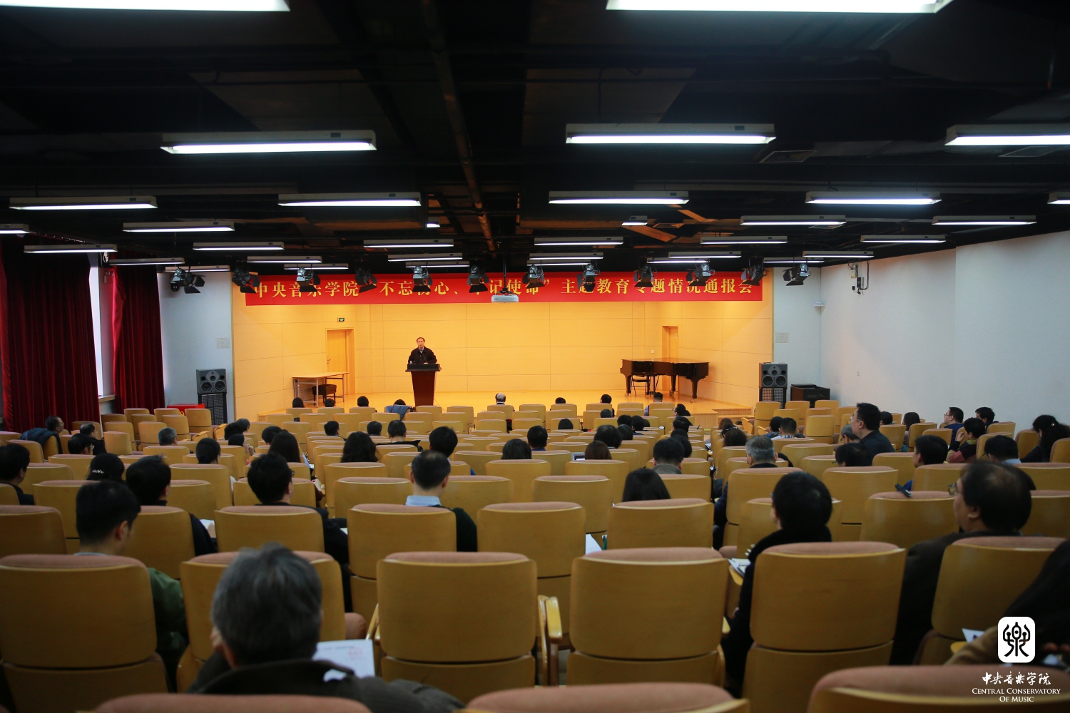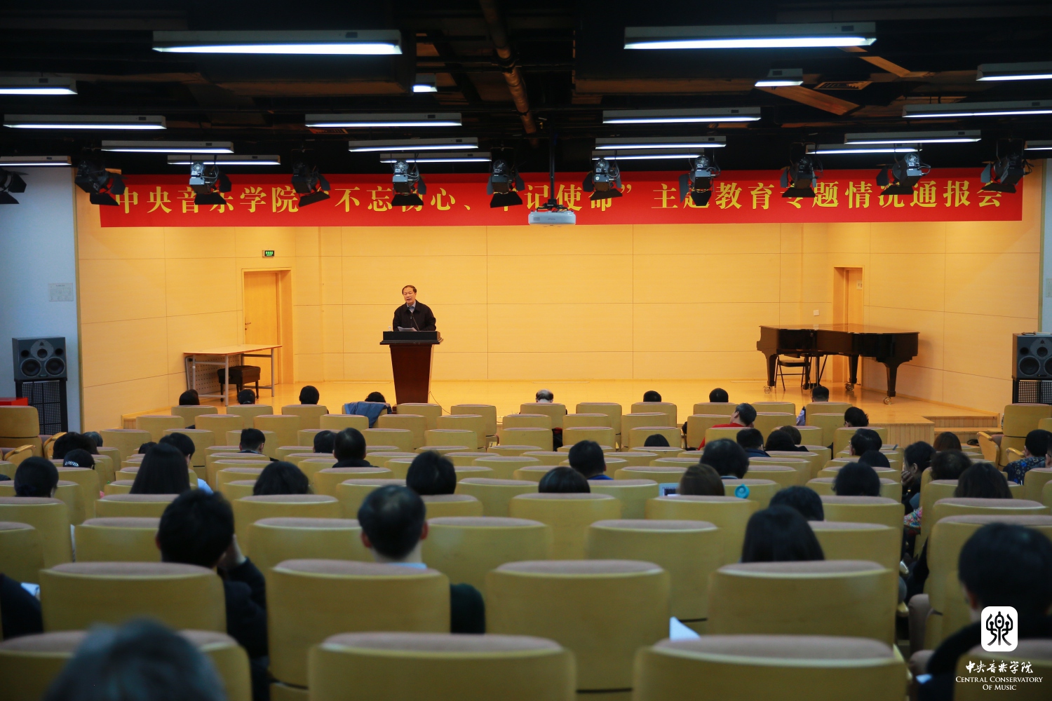 俞峰校长发言指出,学校党委将进一步突出政治建设,增强“四个意识”、坚定“四个自信”、做到“两个维护”,持续推进整改落实到位,将主题教育工作成果转化为教书育人、干事创业的不竭动力,为肩负起建成“中国特色、世界一流”音乐学院的光荣使命提供坚强保障。