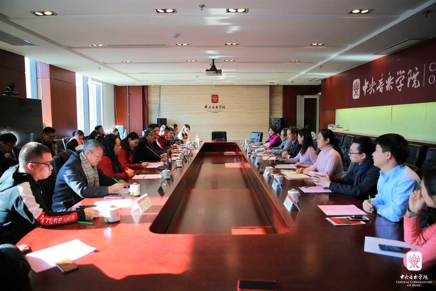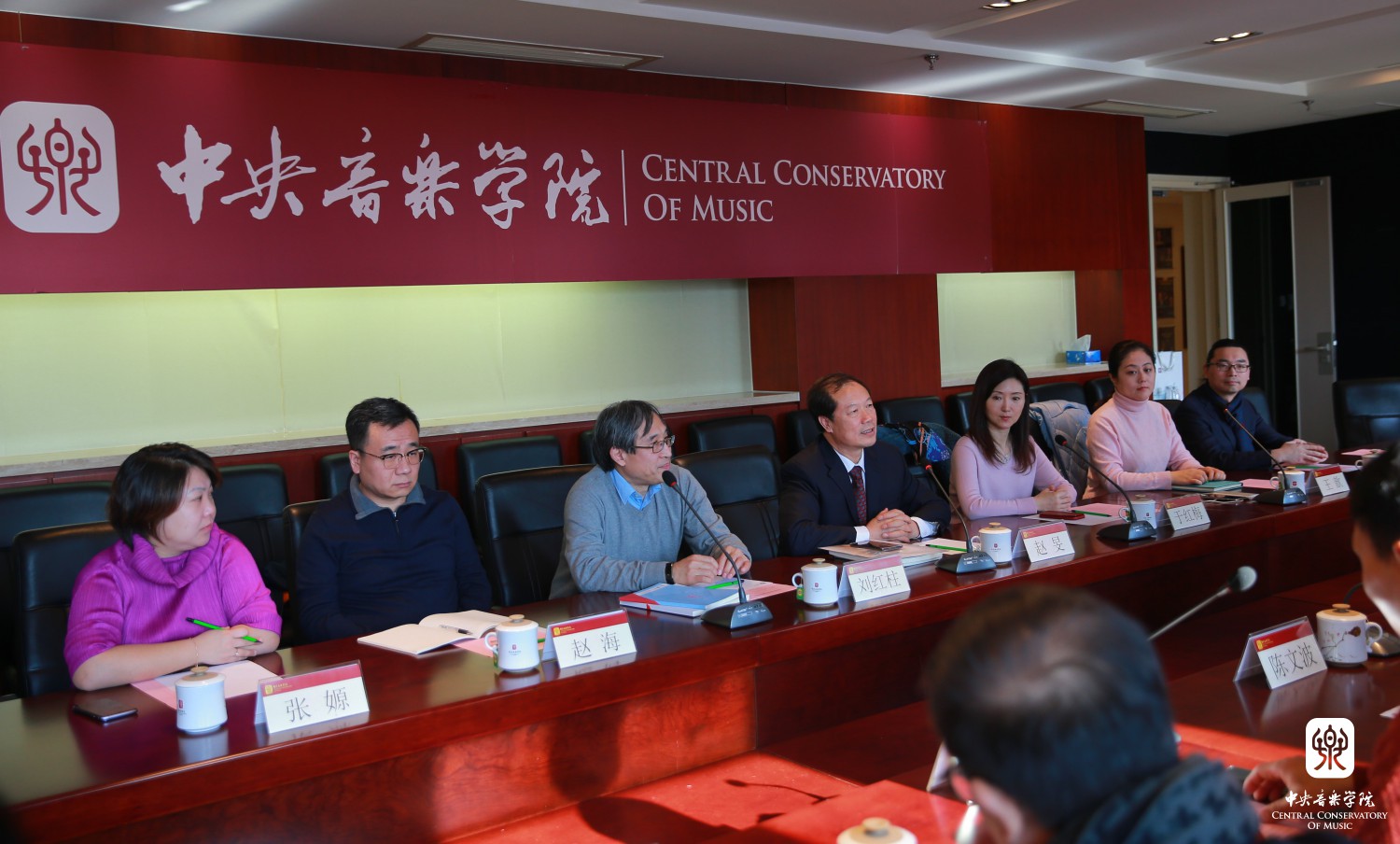 顺德青年企业家协会资深委员梁志明先生代表协会对学校表示衷心感谢,他介绍了协会的基本情况,并表示顺德十分重视音乐艺术的发展,希望双方将来充分发挥各自优势,在艺术实践、学生创业等相关领域开展交流合作。随后,双方相关负责人就校地合作、文化艺术事业发展问题进行了深入探讨与交流。
