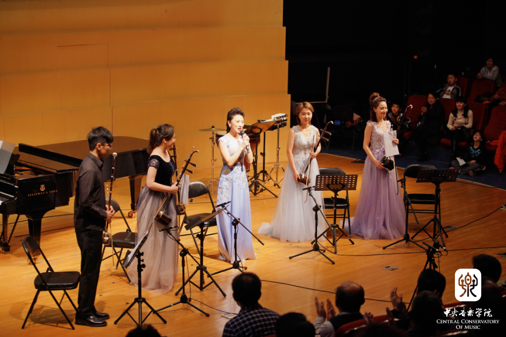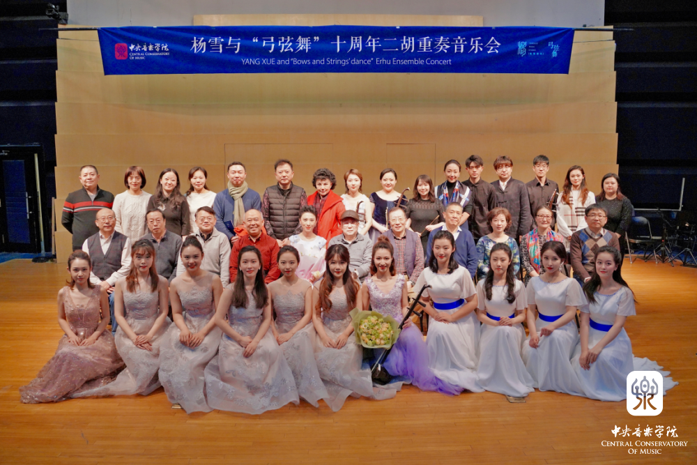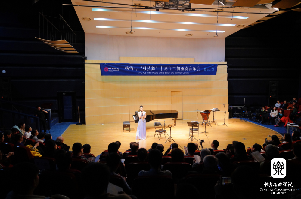 杨雪在音乐会开始时提到,对于胡琴重奏领域的探索,不仅让她与学生增进师生情谊,更是对新作品的二度创作能力以及多声思维听觉意识的极大提升。在日复一日的作品整理、演出排练、调整修改、编配改编过程中她与学生共同进步,并在民乐系开设了《胡琴重奏课程》。此次音乐会,正是她与学生这十年来积累与收获的展示,邀请钢琴、扬琴、打击乐多位演奏家倾情加入,让每一部作品都能得到更为完整的演绎。同时,她特别向一路以来帮助过“弓弦舞”重奏组的各位作曲家、演奏家及各位领导、老师表达最诚挚的感谢,感谢大家多年的倾力付出与陪伴。
