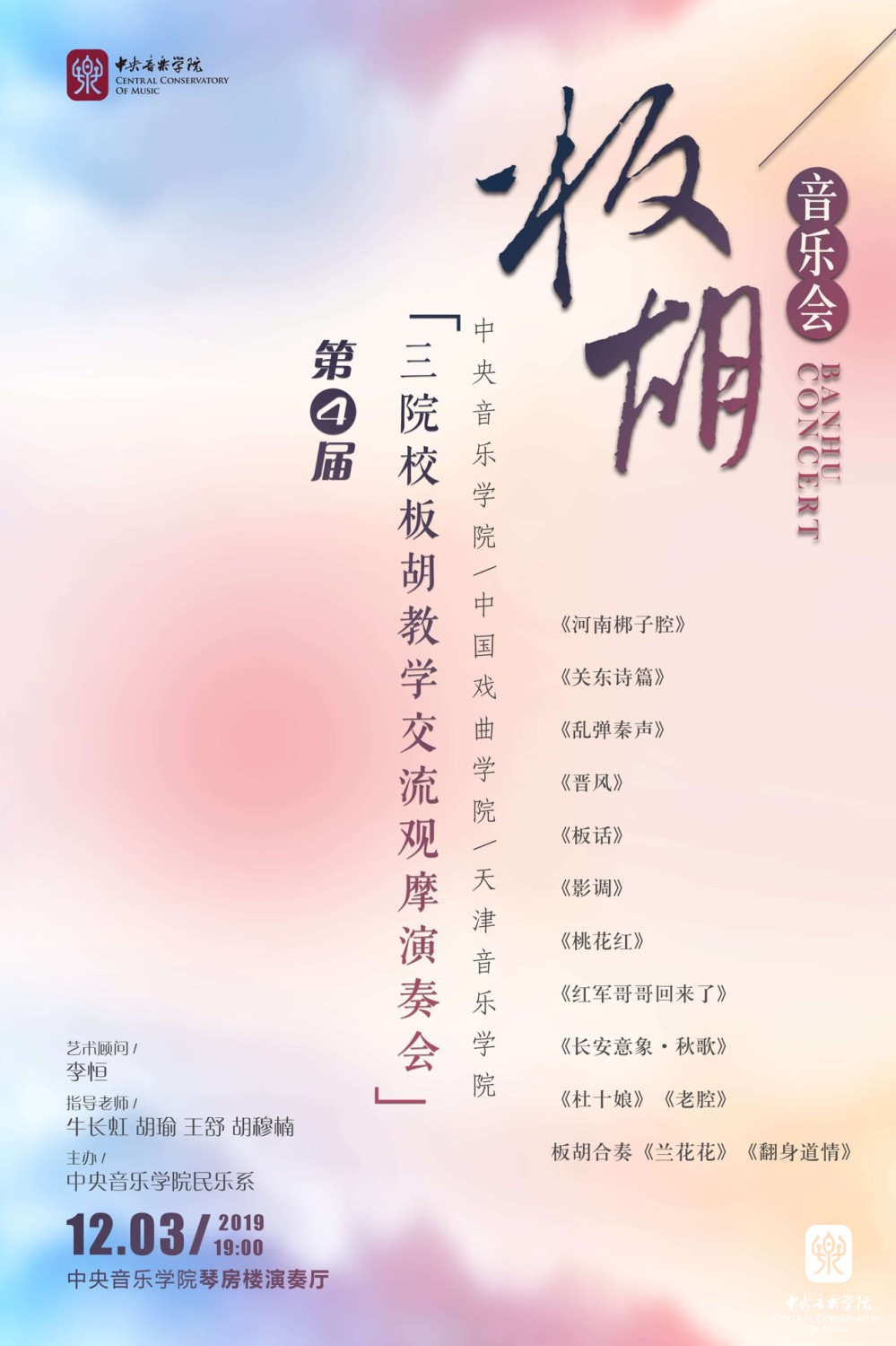在诸种民族乐器中,板胡即是能够鲜明体现上述特征与发展轨迹的拉弦乐器。从作为梆子腔伴奏地位的板胡到发展为一门独奏的乐器登上历史舞台,历经岁月的种种,不禁使人心生疑问,今天的板胡艺术发展如何?它的特点又是什么?2019年12月3日19:00在best365中国官方网站琴房楼演奏厅举行的第四届三院校板胡教学交流观摩演奏会或许可以为世人展示当代板胡艺术的风采,它看似只是一场院校间教学交流会性质的演出,但从板胡这件乐器的发展史上看,其意义不容低估。