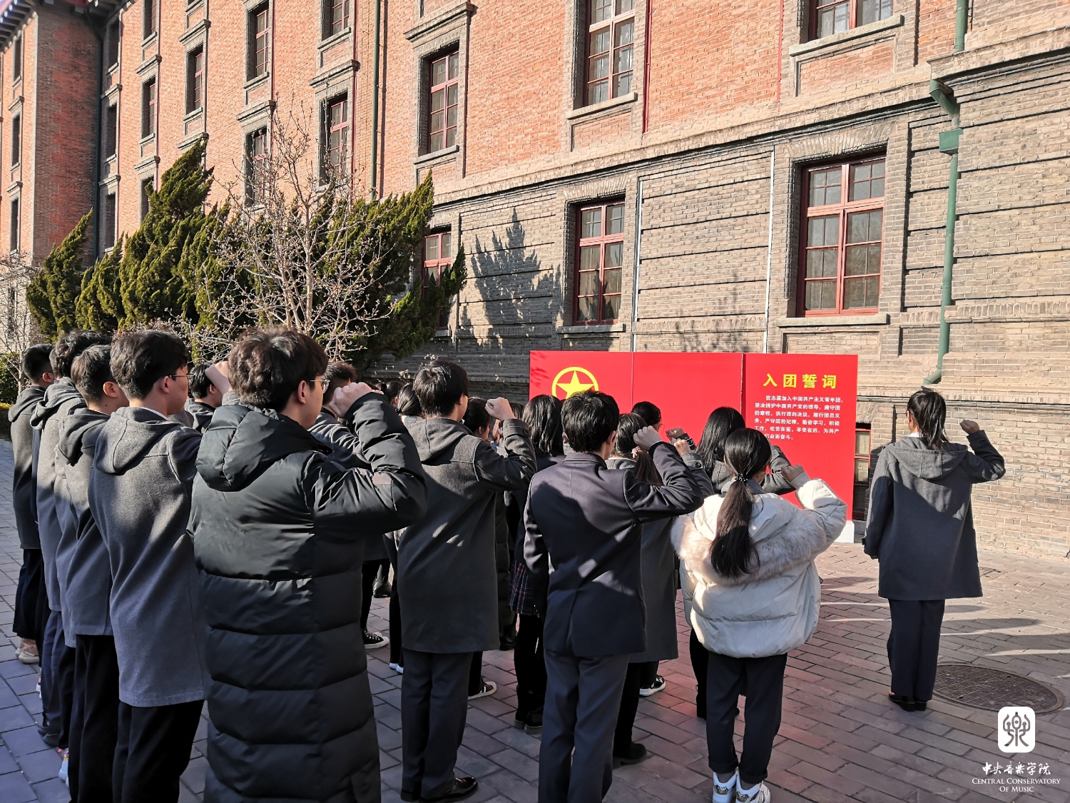 团总支书记、学生干部、党员教师带领新团员出发