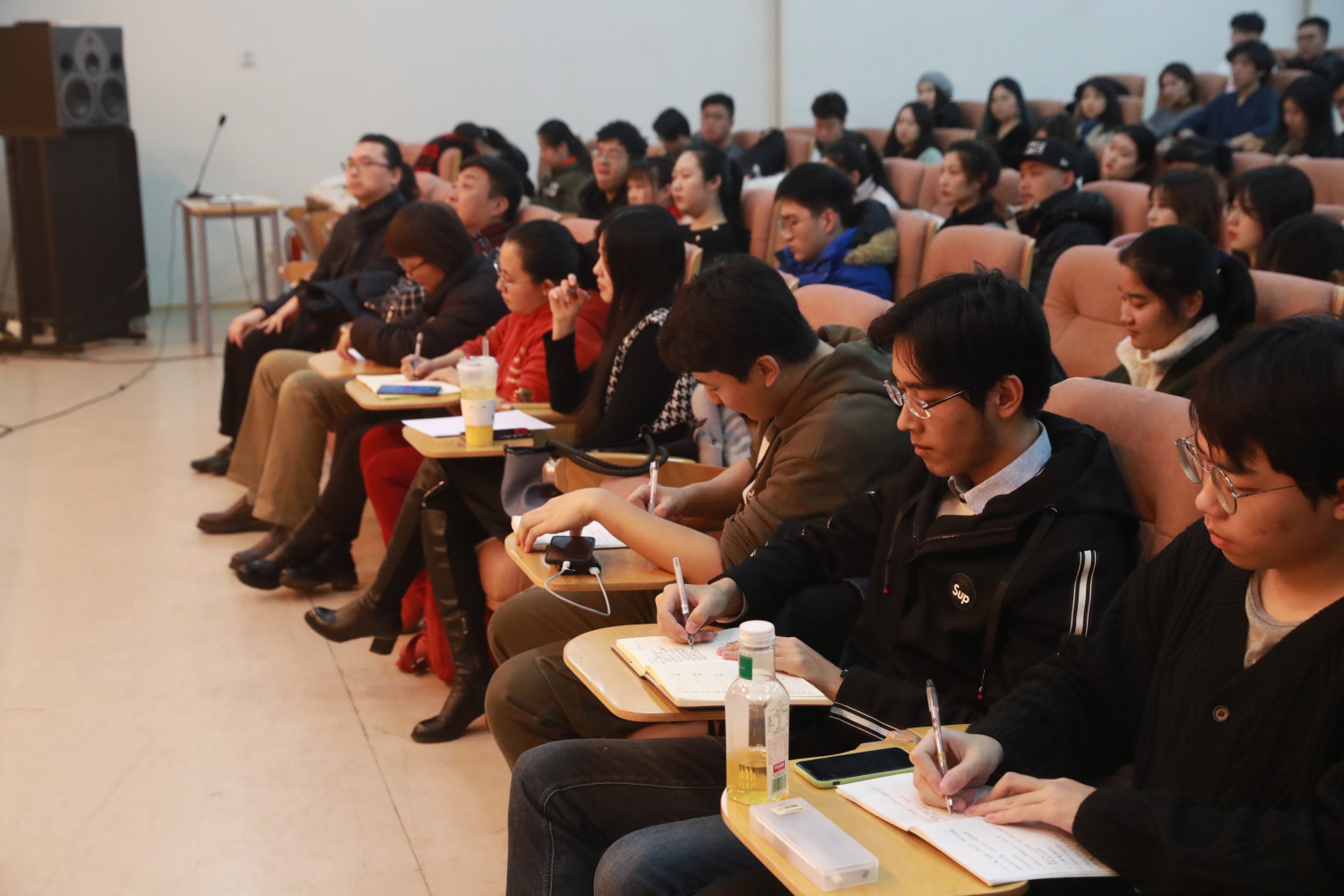 2019年11月29日18:00,best365中国官方网站院长俞峰在教学楼701为200余名学生带来了一场生动而又深刻的“形势与政策”讲座,俞峰院长结合历史、政治、哲学,深入浅出地为师生解读我国的政治、经济、社会、文化发展历史、现状与音乐艺术人才培养目标定位,明确了“为人民服务”的文艺初心以及“立德树人”、培养“德艺双馨”音乐艺术人才的教育使命。讲座现场座无虚席,师生反响热烈,表示备受鼓舞与启发,收获颇丰。党委宣传部部长刘红柱、院长办公室主任兼党委宣传部副部长王歆、学生工作部副部长刘兴辰、党委宣传部副部长陈亚辉及思政部教师出席并认真聆听、学习。