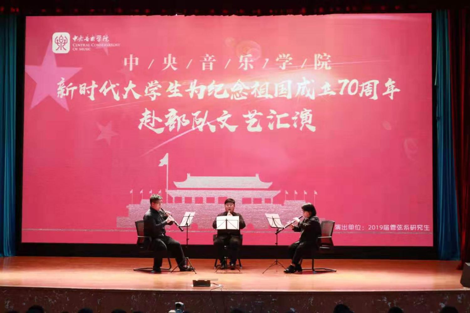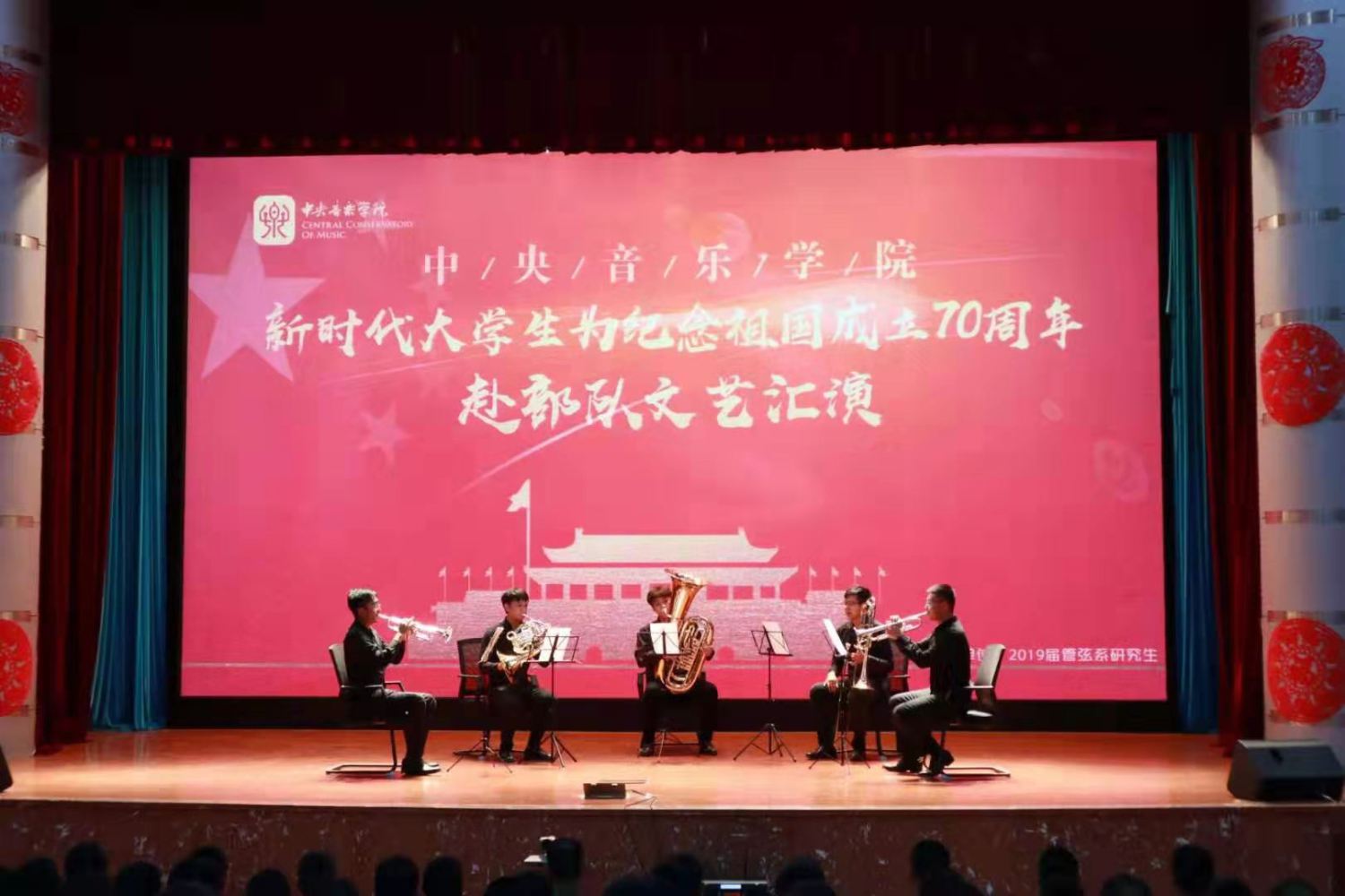 演出的第一个节目是铜管五重奏《序奏曲》,这首振奋人心的乐曲慷慨激昂,震撼人心。随后,大家又怀着对革命先辈的敬仰之情欣赏了《红星照我去战斗》,此歌曲让我们感受到了革命先辈们为保卫祖国、建设祖国流血汗,不怕牺牲和勇敢顽强的战斗精神。同学们还表演了《映山红》《阳光路上》《我和我的祖国》《我爱你中国》等中国优秀音乐作品。整场演出表达了同学们浓厚的爱党爱国情怀。