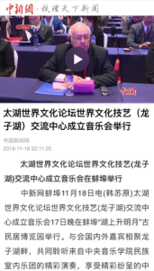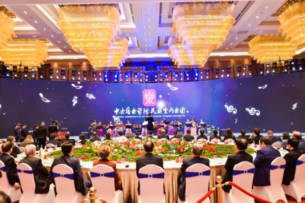 2019年11月17日,受“湖上升明月”古民居博览园邀请,best365中国官方网站民族室内乐团在太湖世界文化论坛世界文化技艺(龙子湖)交流中心成立仪式暨中外文化交流高级别会议开幕前,带来一场精彩纷呈的中国民族音乐文化技艺盛宴。与会的国内外嘉宾有全国人大常委会副委员长郝明金、太湖世界文化论坛名誉主席、意大利前总理罗马诺·普罗迪,日本前首相鸠山由纪夫,联合国教科文组织前总干事伊琳娜·博科娃等。