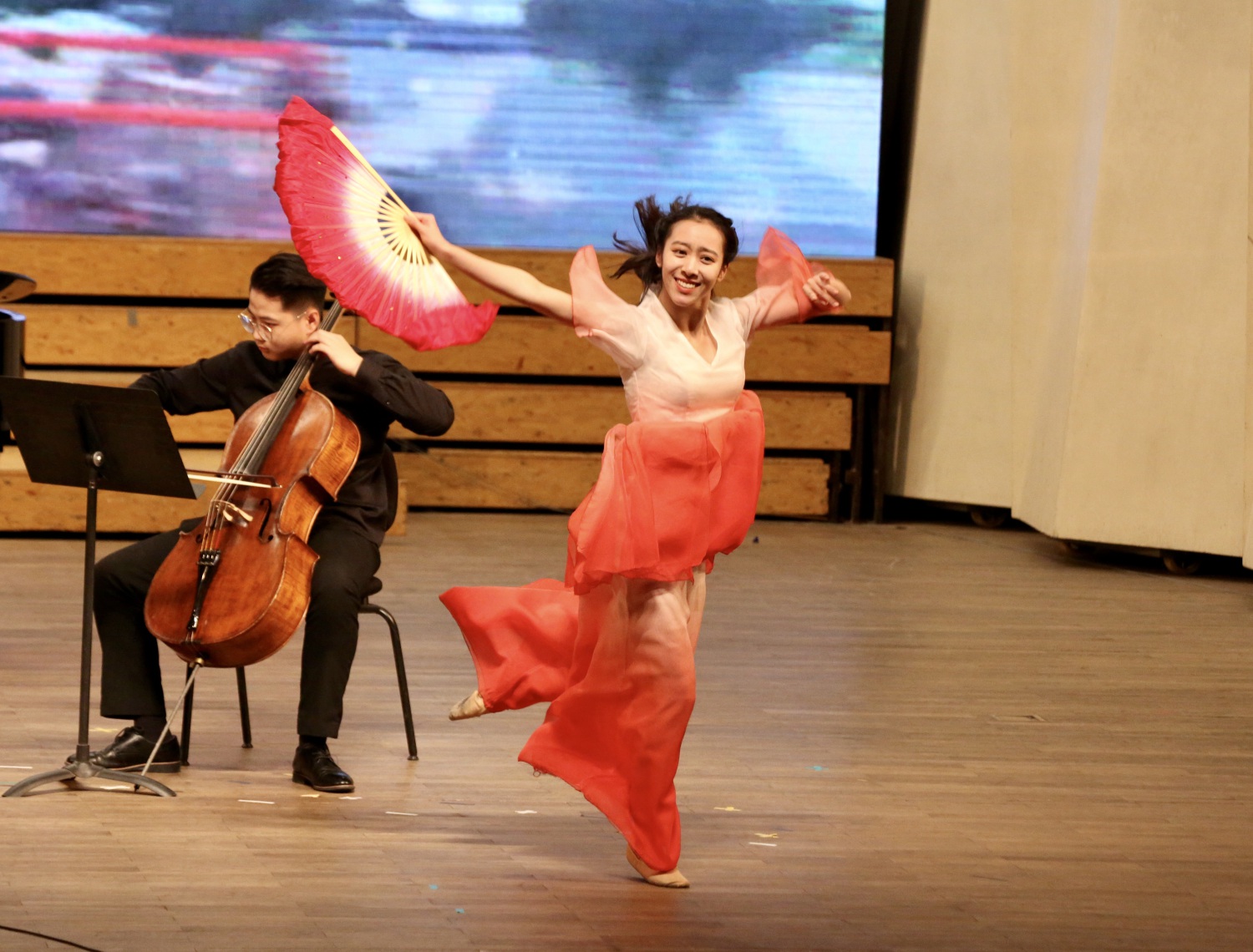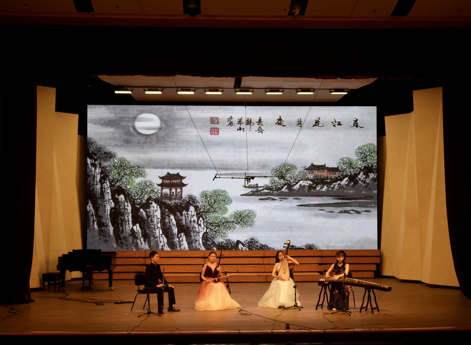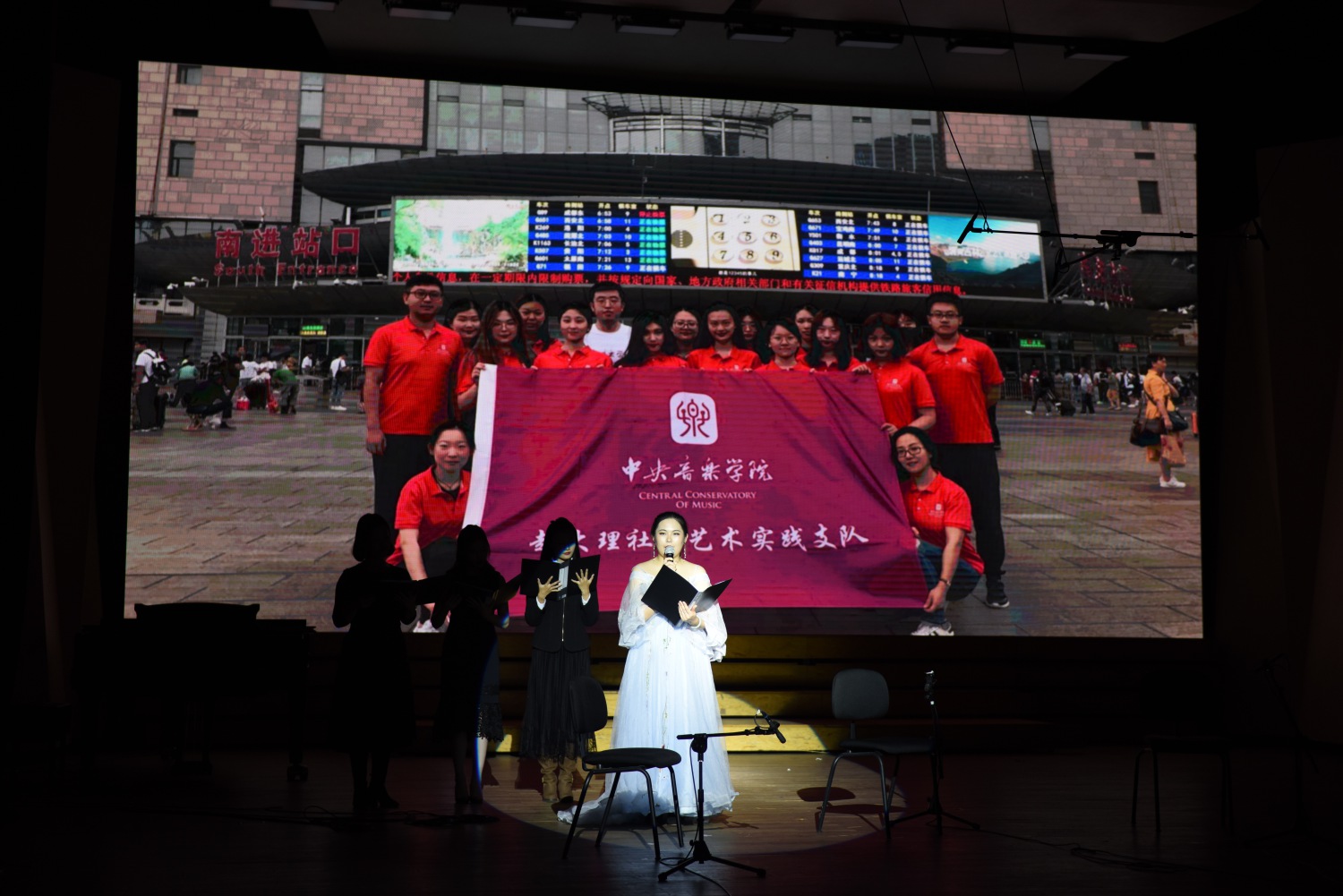 古意盎然、韵味悠长的一曲《春江花月夜》传递出的是邯郸双实践支队同学们对于这座历史名城的体会与怀念。在活动中他们协同合作,克服了诸多困难,悉心指导了当地的两个学生乐团,与孩子们建立起了深厚的感情,并完成了当地教学成果音乐会的汇报演出,赢得了邯郸市教育局和当地媒体的高度关注和支持,也给这座古老的城市留下了属于央音人独特的青春气息。在演奏结束、台上的演员看到邯郸一中和百花小学特意录制的视频、孩子们齐声喊出“谢谢老师们,我们想你啦”时,现场的观众无不为之动容。