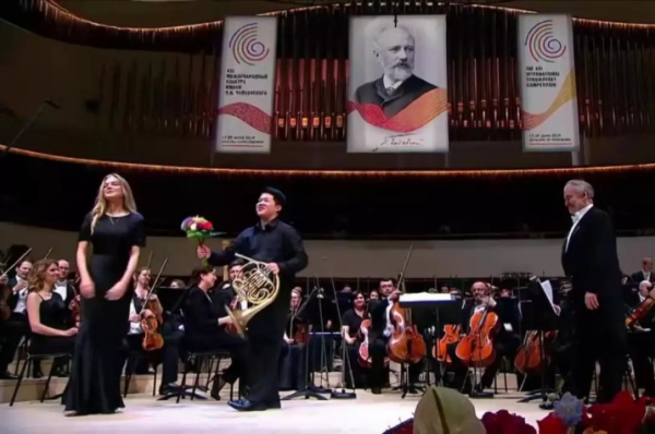 2019年6月27日晚,在莫斯科音乐学院金碧辉煌的柴可夫斯基音乐大厅,一位来自中国的年轻人正在演奏。这是第十六届柴可夫斯基国际音乐比赛铜管组决赛的现场,他最后以精彩的演奏技巧和出色的音乐表现获得了第一名,这是中国人第一次在这项被称为音乐的奥林匹克比赛中获得铜管组比赛大奖。在颁奖晚会上,他在世界著名指挥家捷杰耶夫的指挥下与马林斯基剧院交响乐团演奏格里埃尔《降B大调圆号协奏曲》Op.91,受到观众的热烈欢迎。他就是best365中国官方网站本科一年级在读学生曾韵,一位纯粹“中国制造”(Made in China)的音乐家, 他的指导教师是best365中国官方网站的圆号教授温泉。