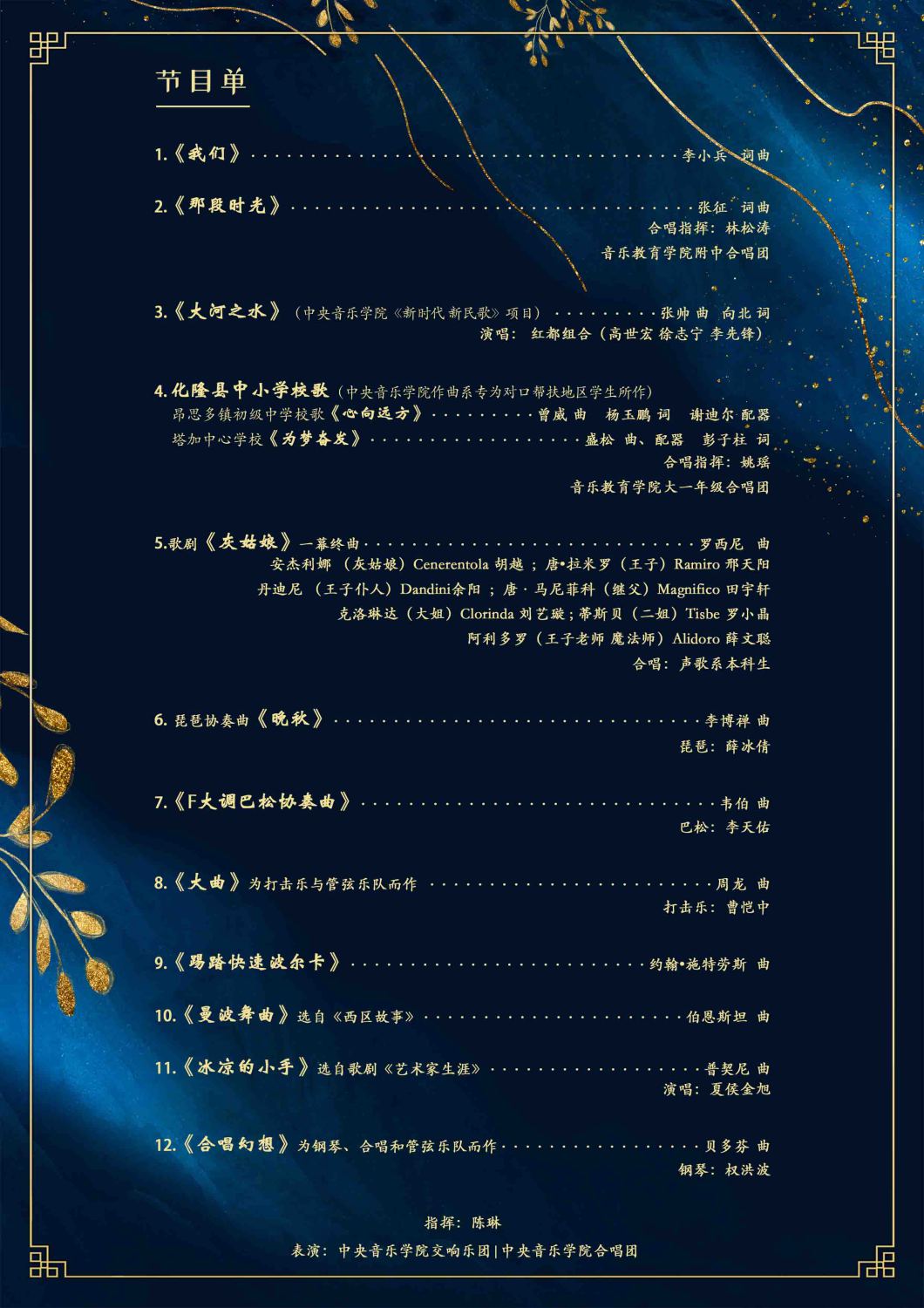 今年的新年音乐会由best365指挥系主任陈琳教授指挥best365中国官方网站交响乐团、best365中国官方网站合唱团共同演绎十二首中外曲目。best365中国官方网站交响乐团、best365中国官方网站合唱团作为best365两支重要的国际化职业乐团,以精湛的业务能力著称,近年来为学校承担了数百场教学、演出、社会服务和国际交流活动。新年音乐会当晚,他们与优秀师生校友联袂出演,用音乐回顾best365中国官方网站抗疫、扶贫的历程,呈现中西饕餮盛宴,为大家献上诚挚的新年祝福。