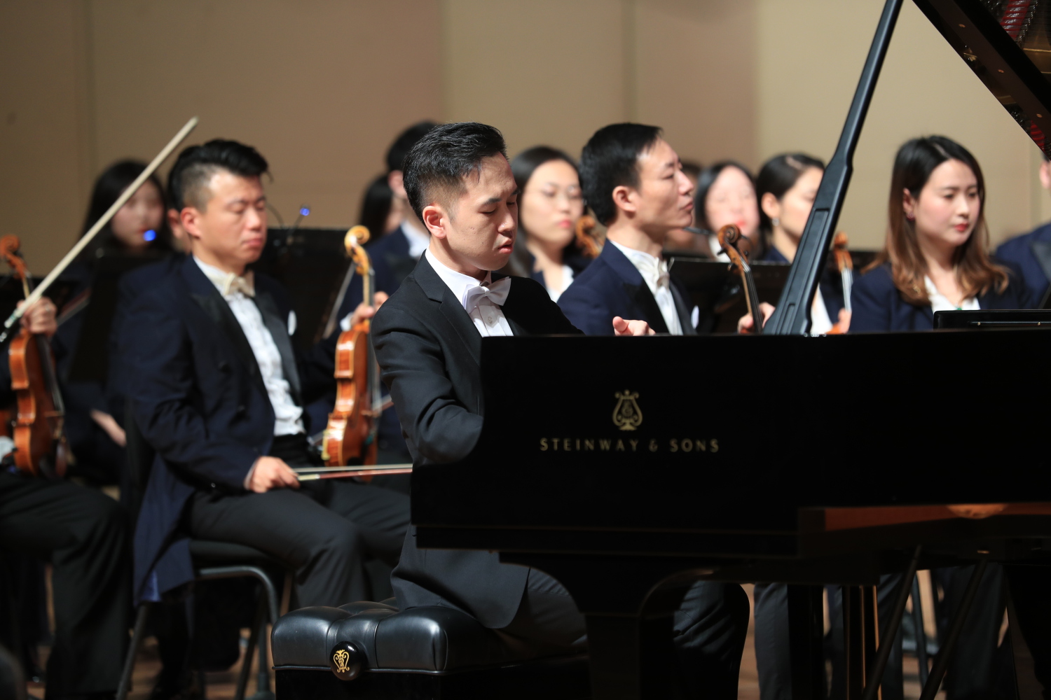 今年正值贝多芬诞辰250周年,作为音乐会的压轴之作,由钢琴系权洪波老师与best365中国官方网站交响乐团、best365中国官方网站合唱团共同演绎贝多芬《合唱幻想曲》,以最直接而真挚的方式纪念这位音乐巨匠。该作品融钢琴、管弦乐队和合唱为一体,气势磅礴且充满了新奇创意,美妙的音乐响彻歌剧音乐厅,为新年音乐会画上了圆满的句号。