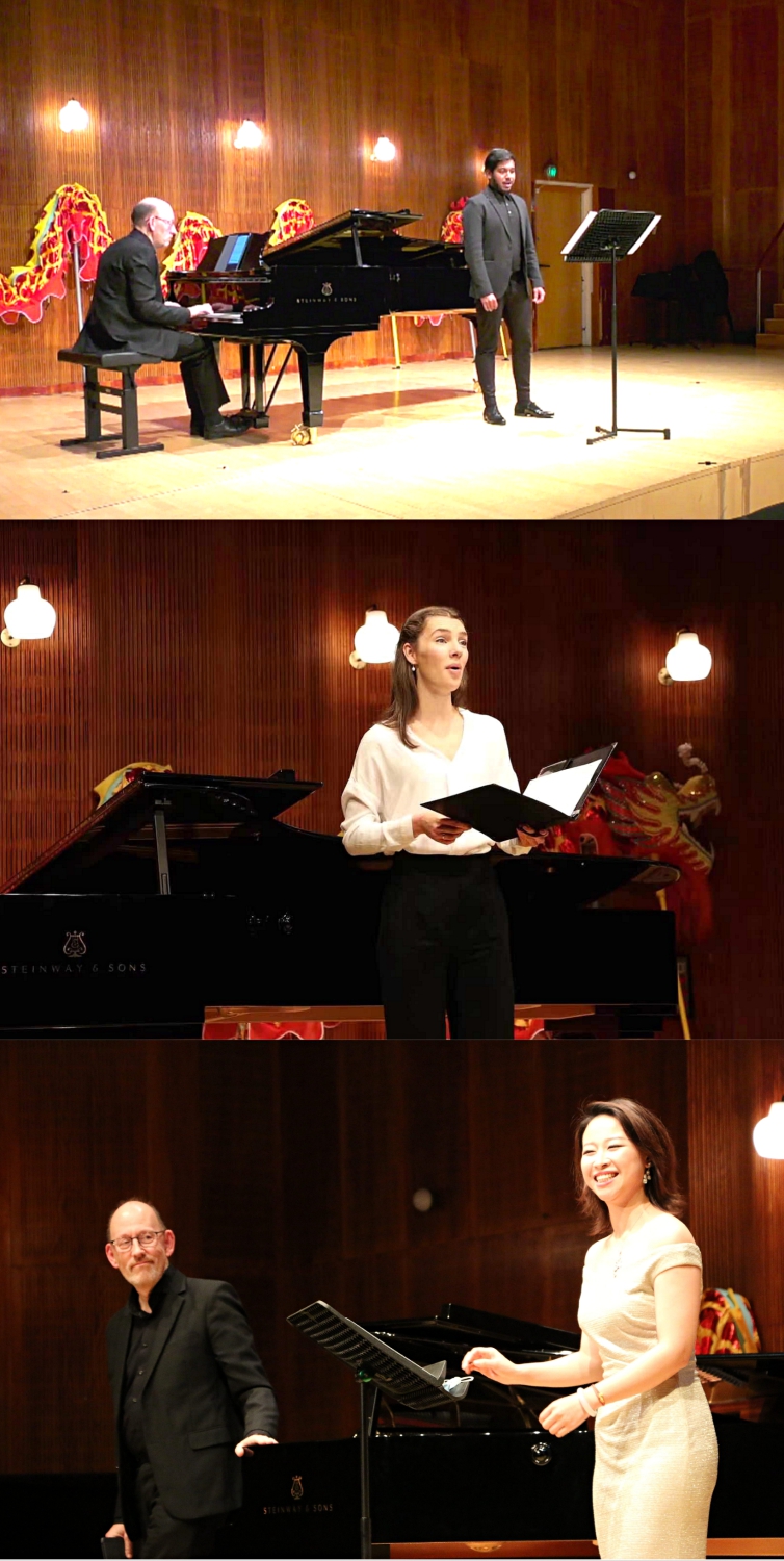4首“安徒生主题”艺术歌曲——《丑小鸭》(作曲:张帅)、《小意达的花》(作曲:宋杨)、《海的女儿》(作曲:蒋安庆)、《冰心》(作曲:巩子晗),分别由丹麦皇家音乐学院声乐系学生Hedvig Stenstedt、Simon Sumal、周旎三人演唱。现场观众热情高涨,掌声不断,大家被中国音乐的美好所吸引,也被中国当代作曲家新颖的作品立意深深感动。
