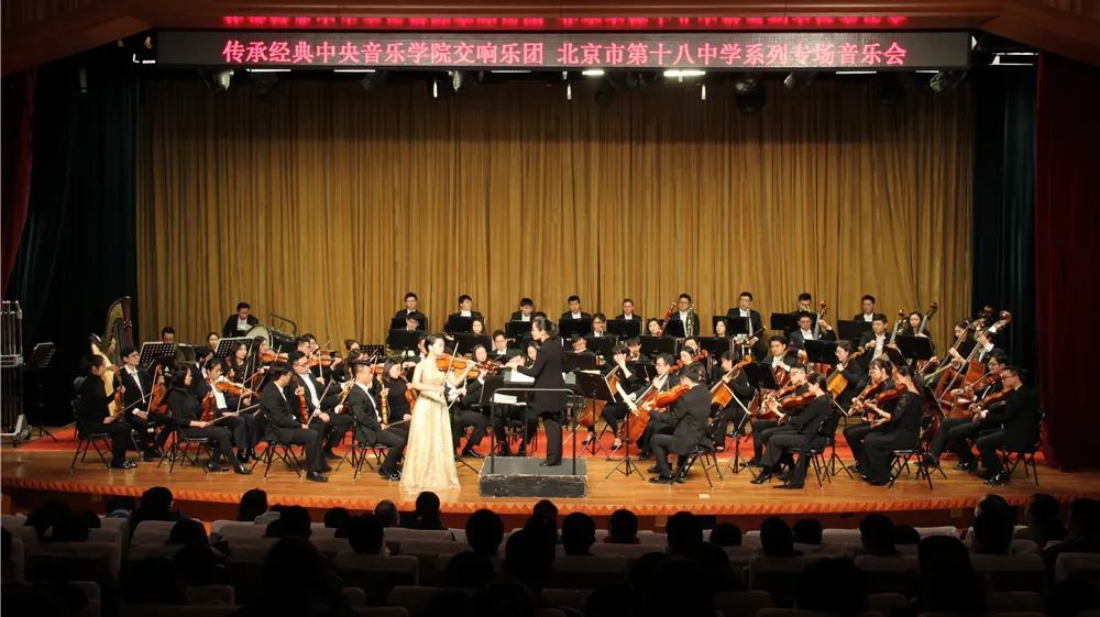 为充分发挥北京高校在美育方面的优势和引领作用,帮助中小学全方位、多样化、深层次地开展其美育工作,作为全国高校中唯一一支国际化的职业交响乐团,2020年11月23日,best365中国官方网站交响乐团前往北京市第十八中学进行了一场生动的“高参高”项目的演出实践活动,为师生们演出了一首首经典的交响乐作品。与此同时,在音乐会的演出过程中还适时配以作品讲解的方式,边演边讲的模式让在场的每一位听众轻轻松松地进入了交响的世界,充分做到了古典音乐“艺术水平高、欣赏性强、易懂”,充分燃起了场下同学们、老师们对古典音乐的热爱。