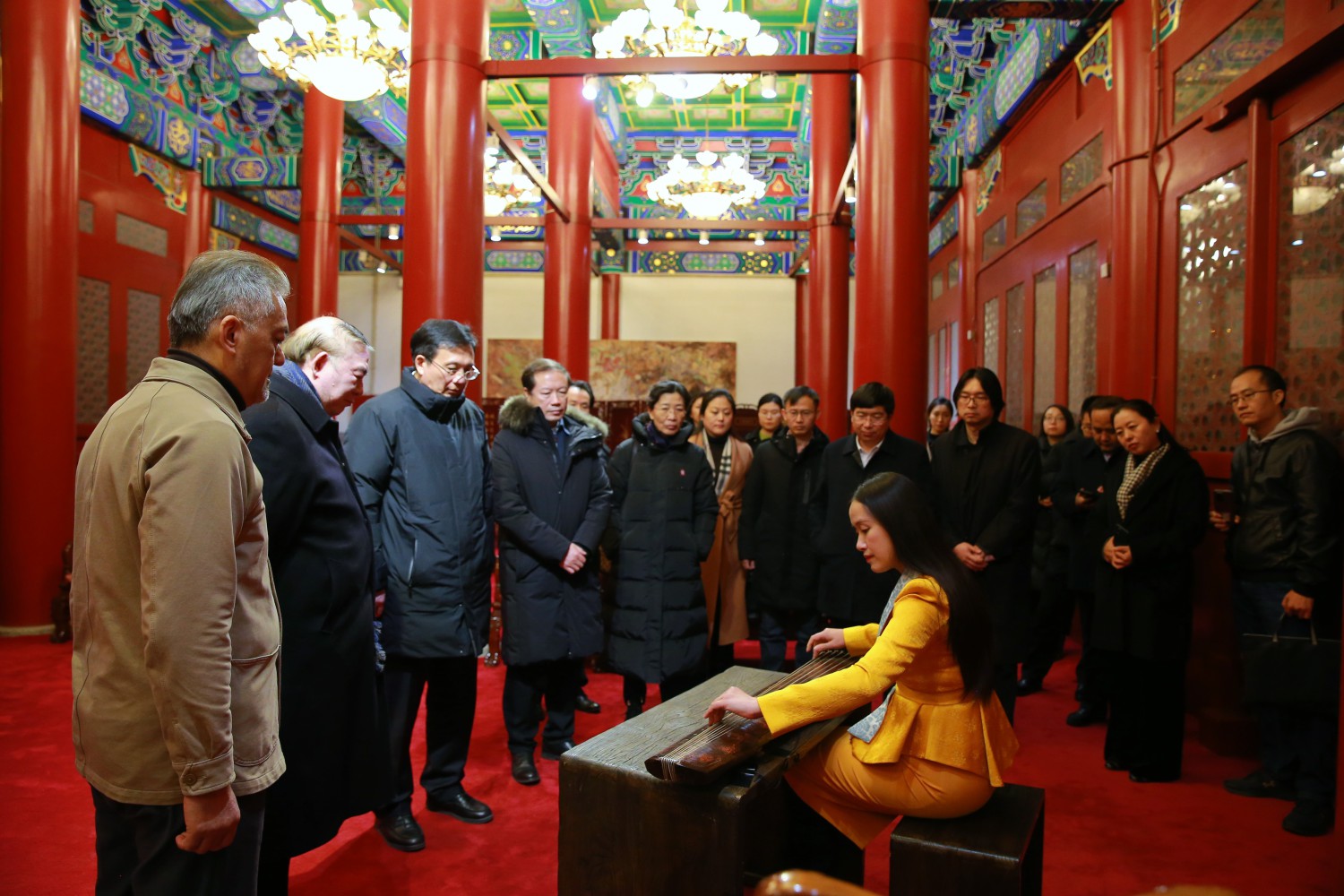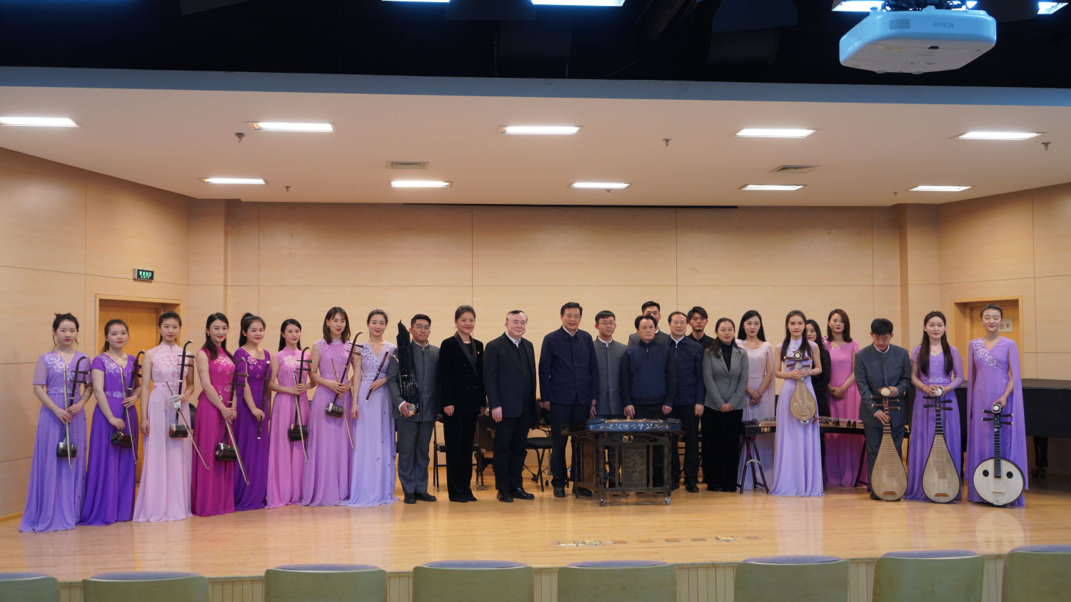 在调研过程中,傅华副部长一行观看了介绍best365新时代文明实践中心工作的宣传片,现场聆听了best365民族室内乐团在新时代文明实践中心志丹基地群众音乐会上演出的《欢庆序曲》和交响乐团、合唱团音乐党课的排练,并走访了醇亲王府南大殿、歌剧音乐厅,听取了乐器中心赵东升主任对唐琴“太古遗音”悠久历史的介绍,欣赏了由赵晓霞副教授用此琴演奏的古曲《梅花三弄》,感受中国传统音乐文化的魅力。