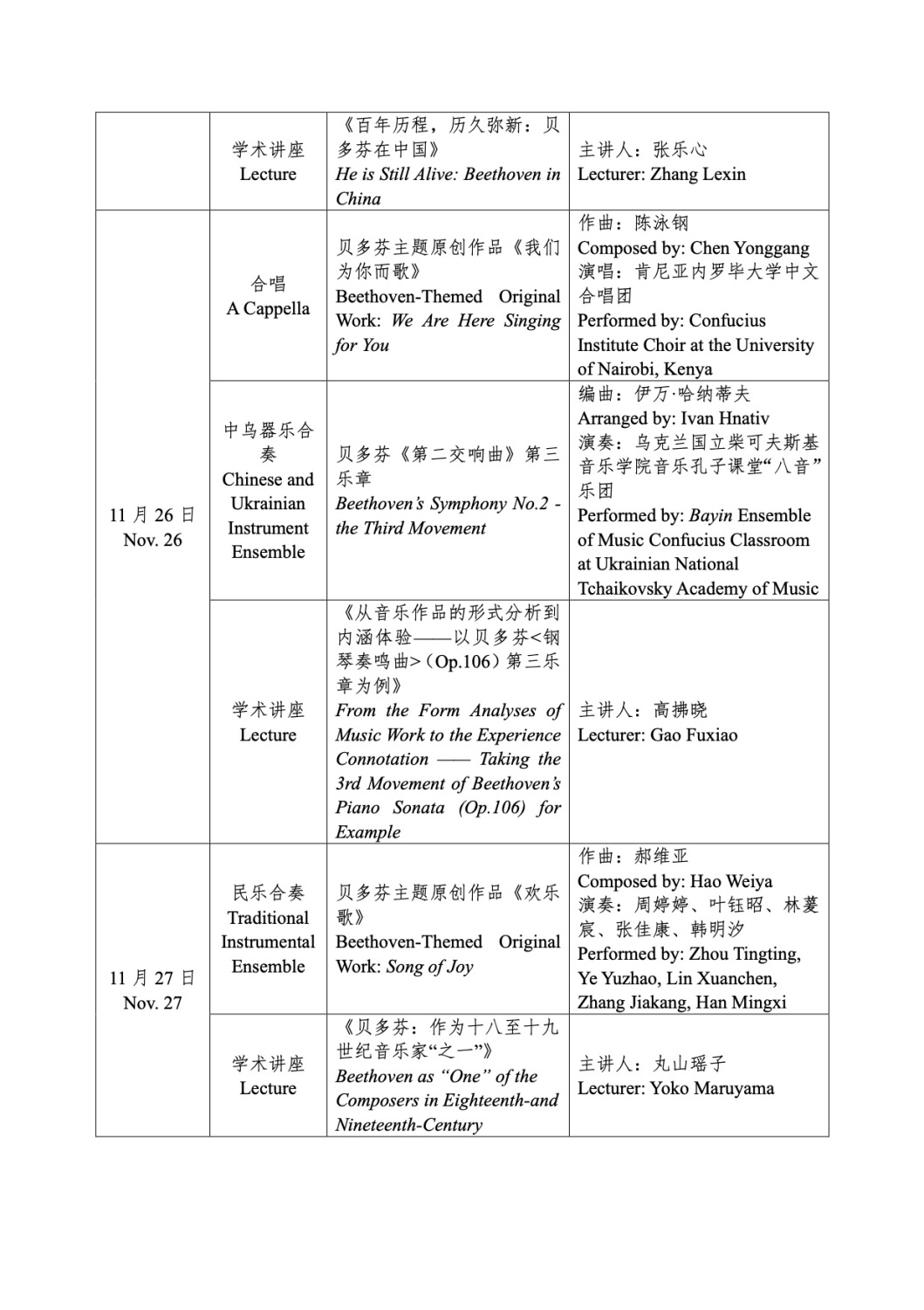 From November 23 to 27, Beethoven in a Global Perspective: Online International Music Festival in Commemoration of the 250th Anniversary of the Birth of Beethoven will be released on CCOM official website (), CCOM official WeChat account (ccom1940) and Central Music Online APP. Hosted by Central Conservatory of Music (CCOM), organized by Music Confucius Institute Office & Center for International Music Culture Exchangeand Modern Distance Music Education College, and co-organized by global Confucius Institutes and Departments of CCOM, the Festival invites scholars, composers, performers and youth music groups from the five continents to present 8 lectures, 5 commissioned original work and an original work of Beethoven, highlighting Beethoven’s contemporary significance and value in different cultural contexts from multiple perspectives.