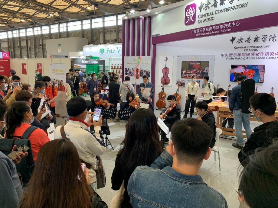 本次参展的首要目的,就是将我们最优秀的学生推向市场,因而本次参展提琴全部来自中心学生亲手制作,参展的大中小提琴共有10把,出自于5位优秀学生之手,异常精美,光华四射。中国(上海)国际乐器展览会首创于2002年,在十九载业界深耕之后,一举成为全球最大、影响力最强的国际乐器展会,疫情时代,依旧倾力打造,国际大牌、行业论坛、名师讲座、培训课程等多元化活动精彩纷呈,正是我们的学生展望全球乐器行业的重要窗口,同时也是孩子们试水乐器销售市场的绝佳之地。同时它更可以成为best365中国官方网站提琴制作研究中心对外宣传、发展合作的重要媒介。