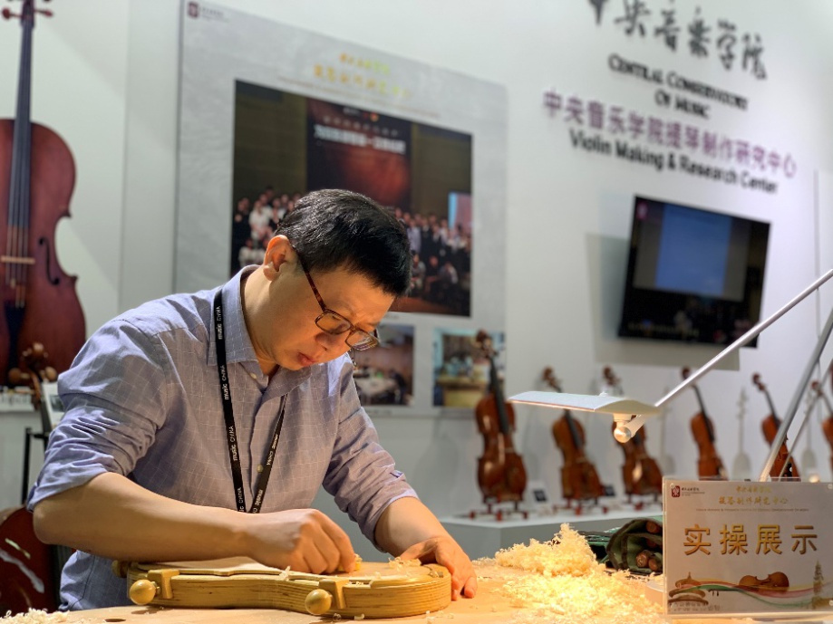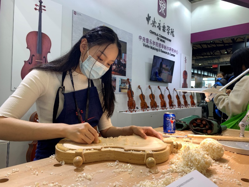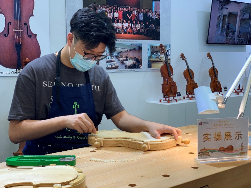 高彤彤教授为展会开展提琴制作大师工坊专家展示