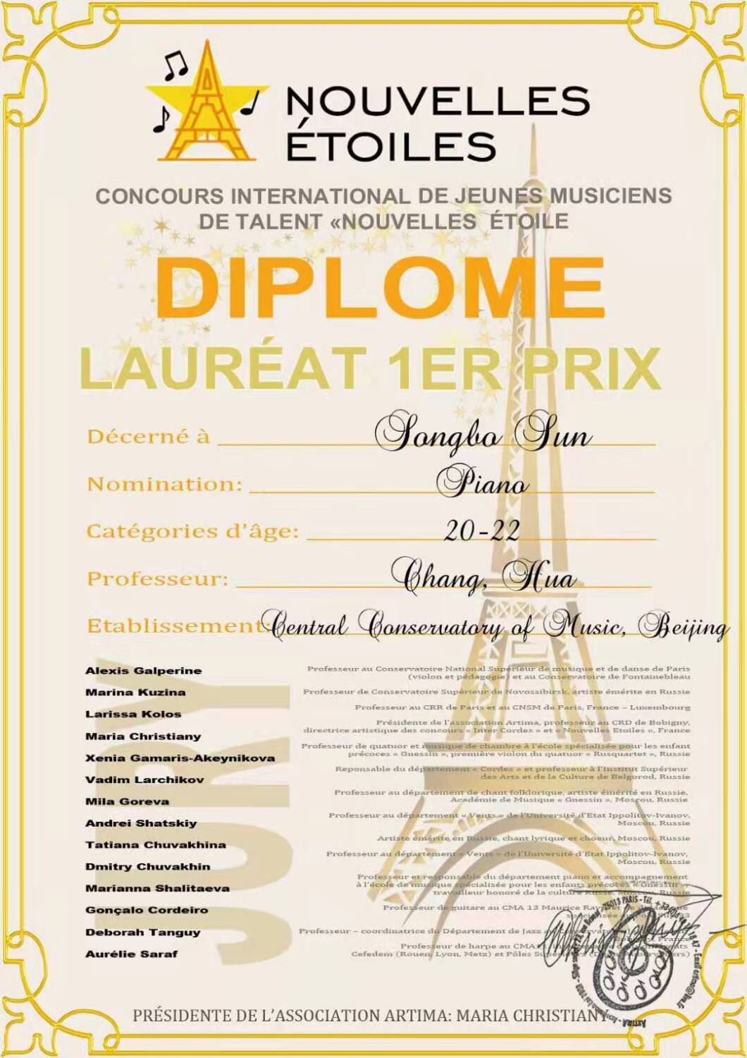 2021第四届法国新星国际音乐大赛(钢琴)第一名