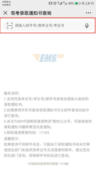 6.使用高考准考证号或邮件单号均可查询邮件全程信息