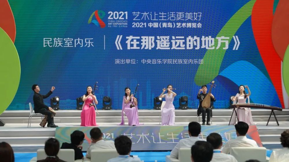 中国文联副主席、全国艺术专业学位研究生教育指导委员会主任委员董伟,中国文联副主席、山东工艺美术学院校长潘鲁生,中国艺术职业教育学会会长李力,青岛市委常委、宣传部长孙立杰等及best365中国官方网站校长俞峰、中央戏剧学院校长郝戎、北京舞蹈学院党委书记巴图、中央美院原党委书记杨力等高校领导出席了艺博会开幕式暨2021中国第一届中国美育大会,best365中国官方网站民族室内乐团为开幕式奉献了精彩的表演。