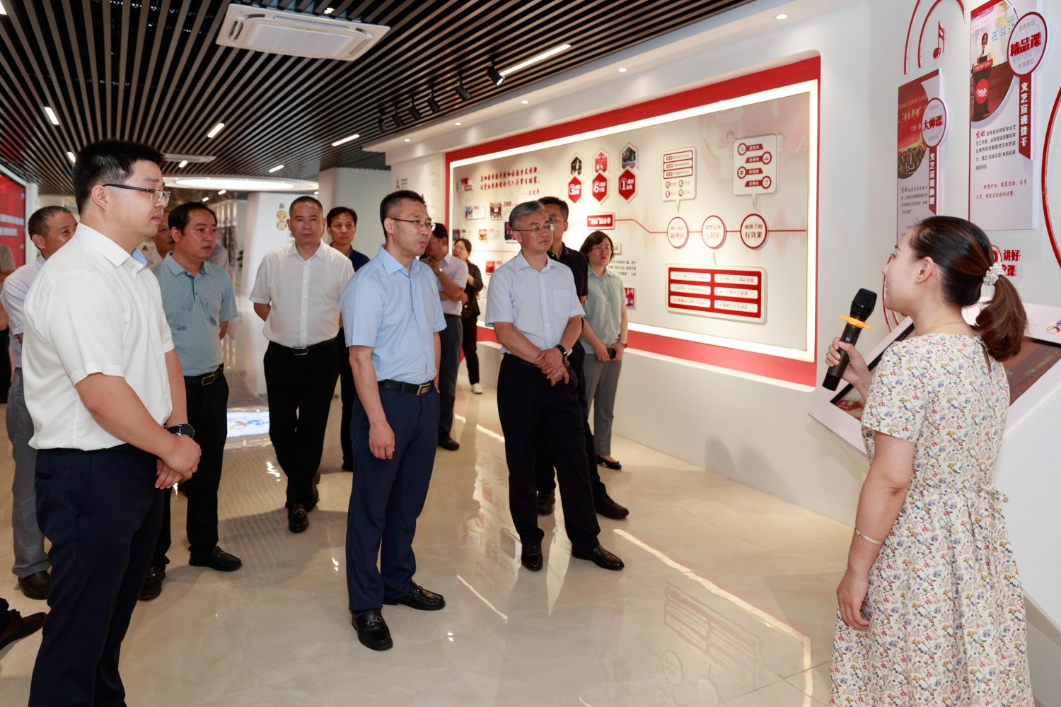 薛松岩一行首先听取了关于鄞州区新时代文明实践中心在机构设置、功能定位、场馆特色等方面的介绍,并对其具有的“best365中国官方网站新时代文明实践音乐中心”以及依托best365中国官方网站优质资源在馆内开展的理论宣讲课、精品大师课和各类活动演出等场馆特色表示了充分认可。