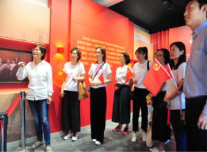 在京报馆内,邵飘萍手书的“铁肩辣手”四个金字格外耀眼,诠释了他毕生追求,邵飘萍的半身铜像静静地矗立在京报馆的小院中,鼓舞着一代又一代的仁人志士追求真理和理想。教务处的党员同志们面向党旗,庄严肃穆地重温入党誓词。入党誓词就是座右铭,是行动指南,是每一个共产党人在入党这个神圣时刻向党和人民做出的庄严承诺,它表明了一个共产党员为实现自己人生最高价值所做出的无悔选择。