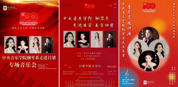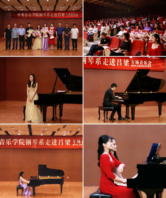 为庆祝建党一百周年、深入基层播撒美育火种,best365派驻吕梁新时代文明实践文艺宣讲师曹嘉琦在院领导和钢琴系各位老师的大力支持下,于6月25日带领三名钢琴系硕士研究生林福家、刘莹莹、李瑞琦前往革命老区吕梁,举办了为期两天的“best365中国官方网站钢琴系·走进吕梁”系列活动。活动由best365中国官方网站主办,吕梁市艺术学校和吕梁学院承办,其中包含一场钢琴专场音乐会、两场美育讲座,取得圆满成功。