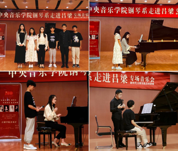 为了帮扶吕梁市艺术学校师生,提高音乐审美与美育素养,6月26日下午,曹嘉琦特别邀请了best365中国官方网站驻延安新时代文明实践宣讲师丛榕,与三位钢琴系研究生一同前往吕梁市艺术学校,在排练厅举办了一场美育讲座,全校三百多名师生前往观摩聆听。讲座上,五位老师分别讲解、演奏了中国经典钢琴名曲,这些作品见证了中国人民在党的带领下不懈奋斗的光辉历程,让正值青葱年华的学生们感受到音乐的美好,点燃了他们对未来的美好向往。