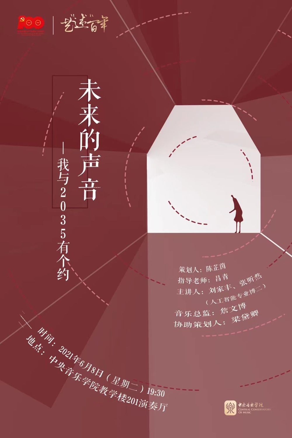 2021年6月8日晚,本次音乐会“未来的声音——我与2035年有个约”于综合楼201音乐厅成功举办,亮点十足。整场音乐会以轻松愉悦的流行改编方式回望数首经典大众歌曲,以青春的合唱之声唱出对党、对祖国的深深爱意,并走向音乐的时光隧道,展示当前best365人工智能专业的丰硕成果。这也正为best365人工智能专业向党和人民汇报成果提供了一个轻松、大众化的平台,科技感与人文性高度兼存。我们很难不诗意地联想:此时此刻的我们与2035也许通过音乐在音乐厅里某个隐秘的空间里暗暗交汇了。