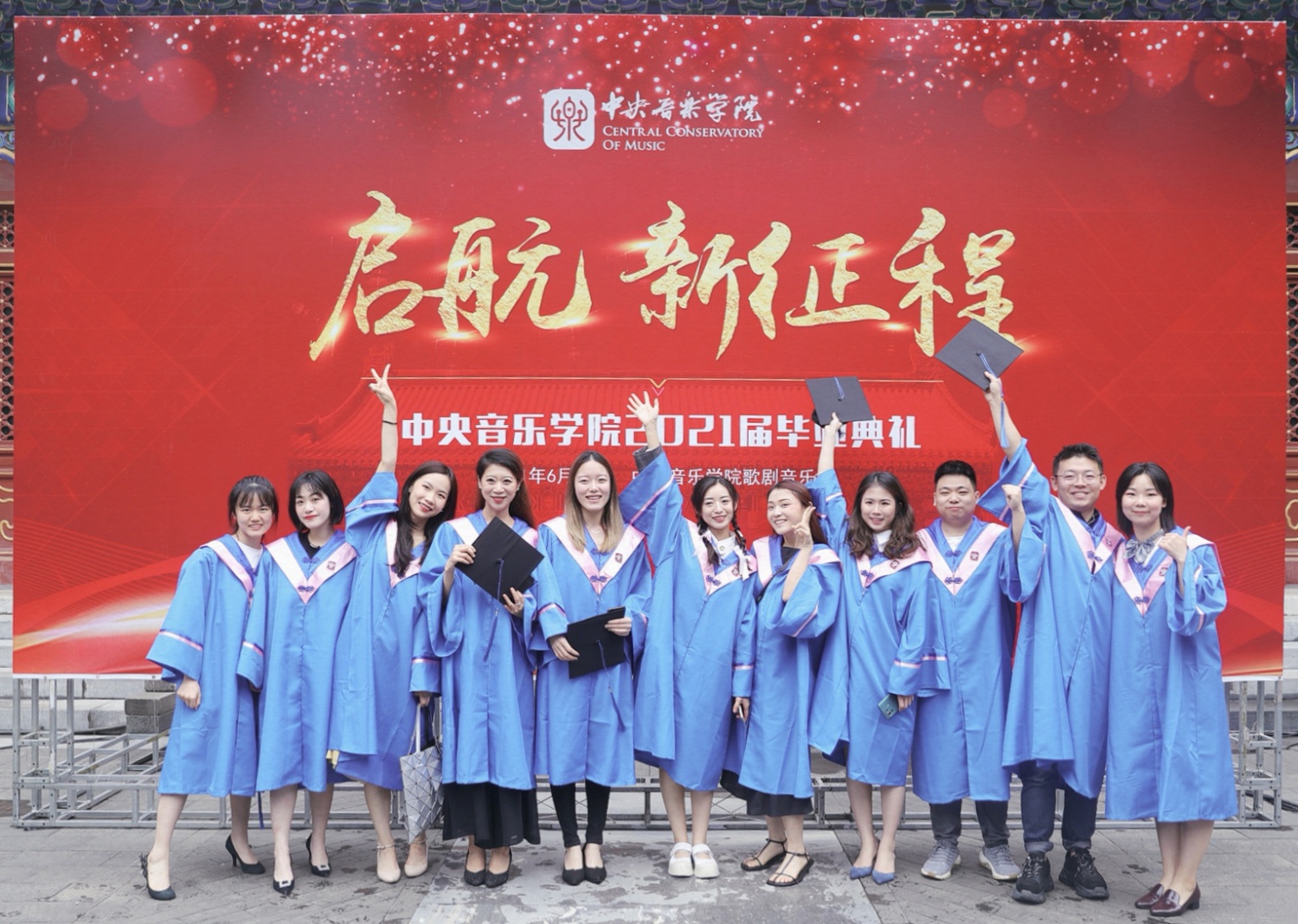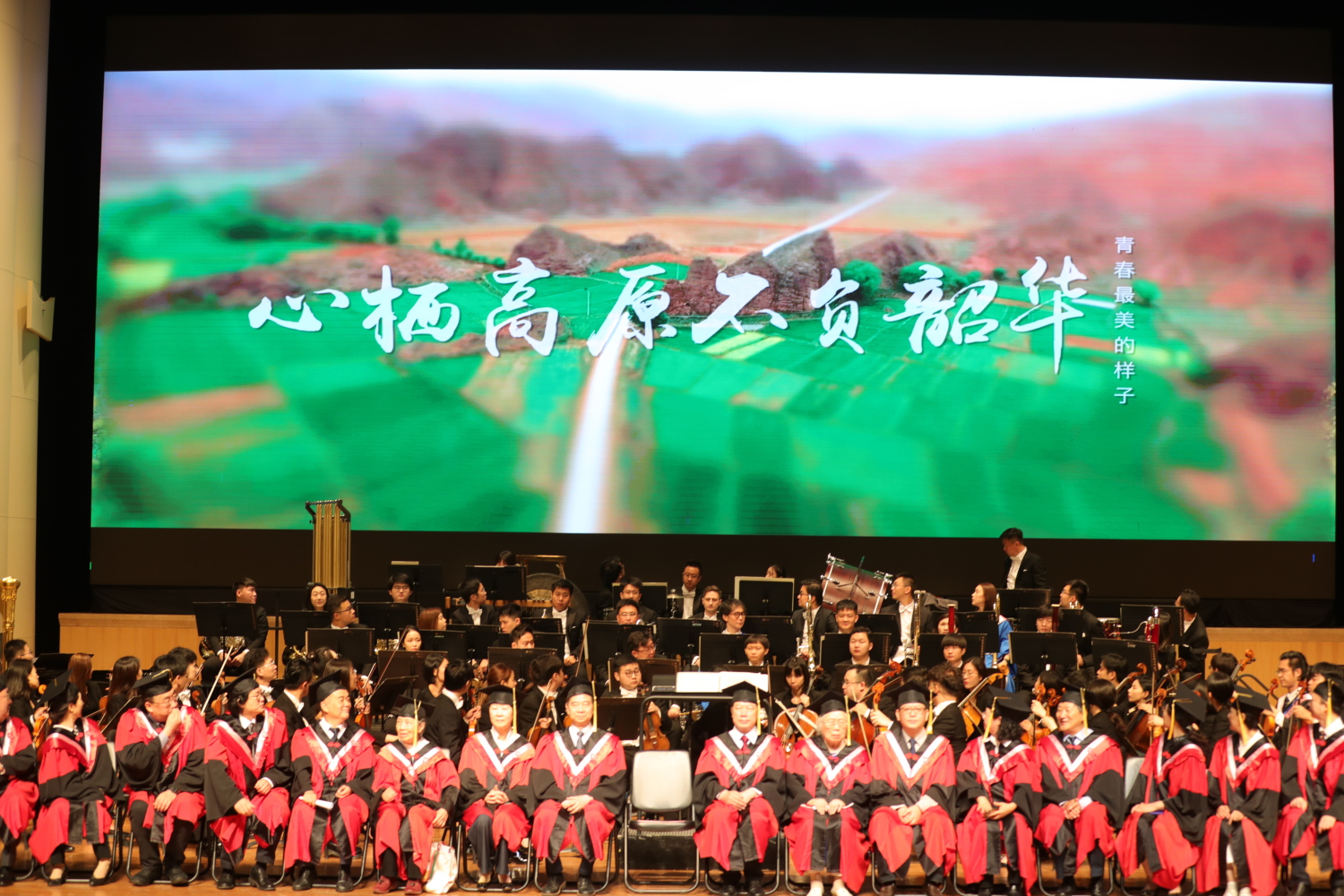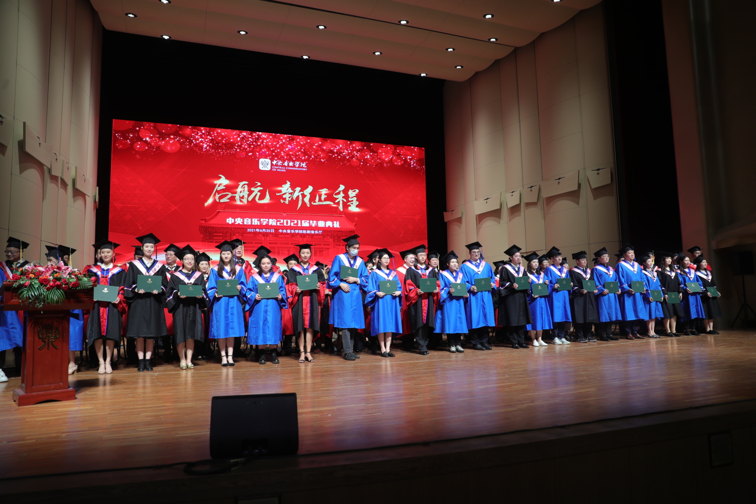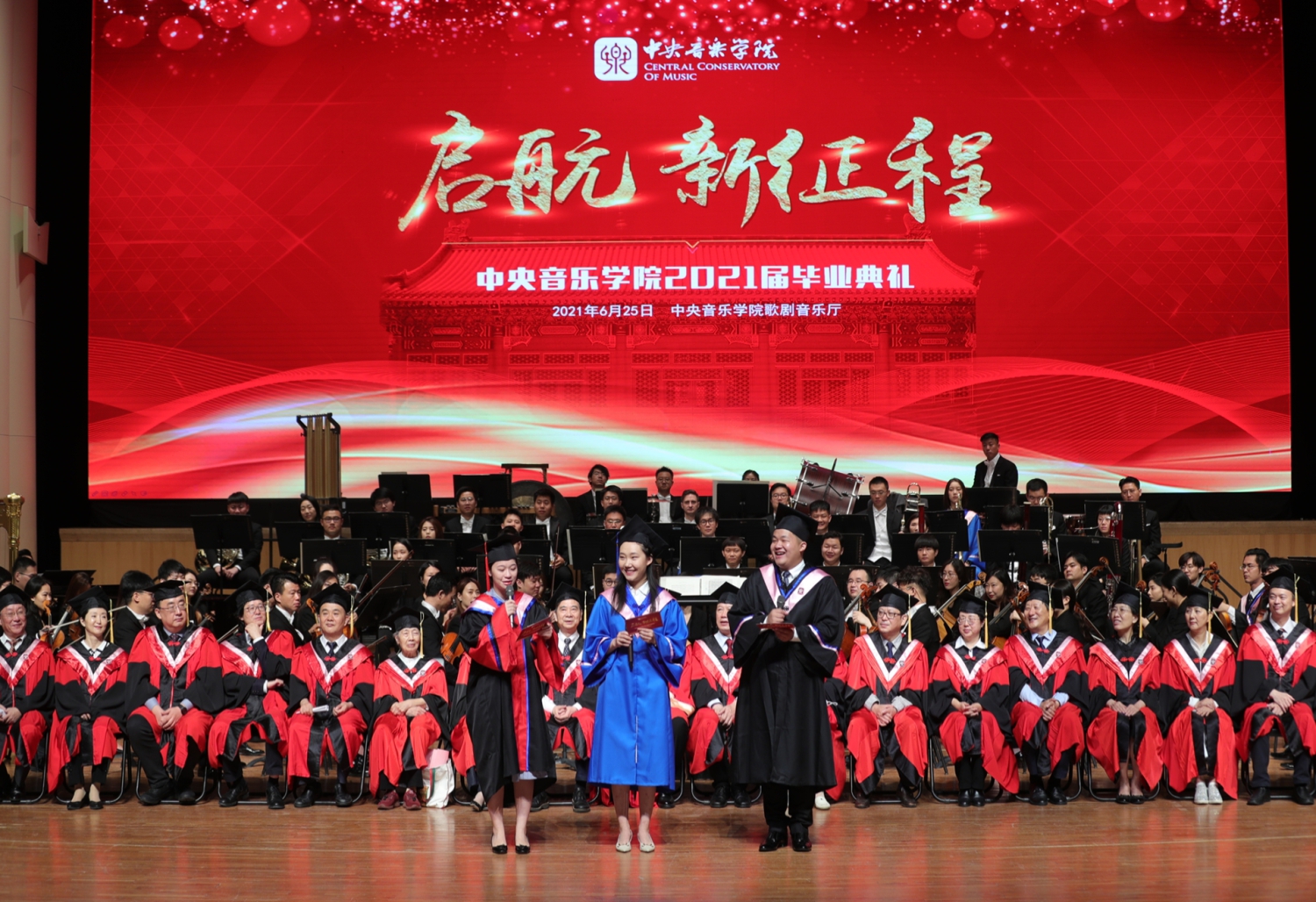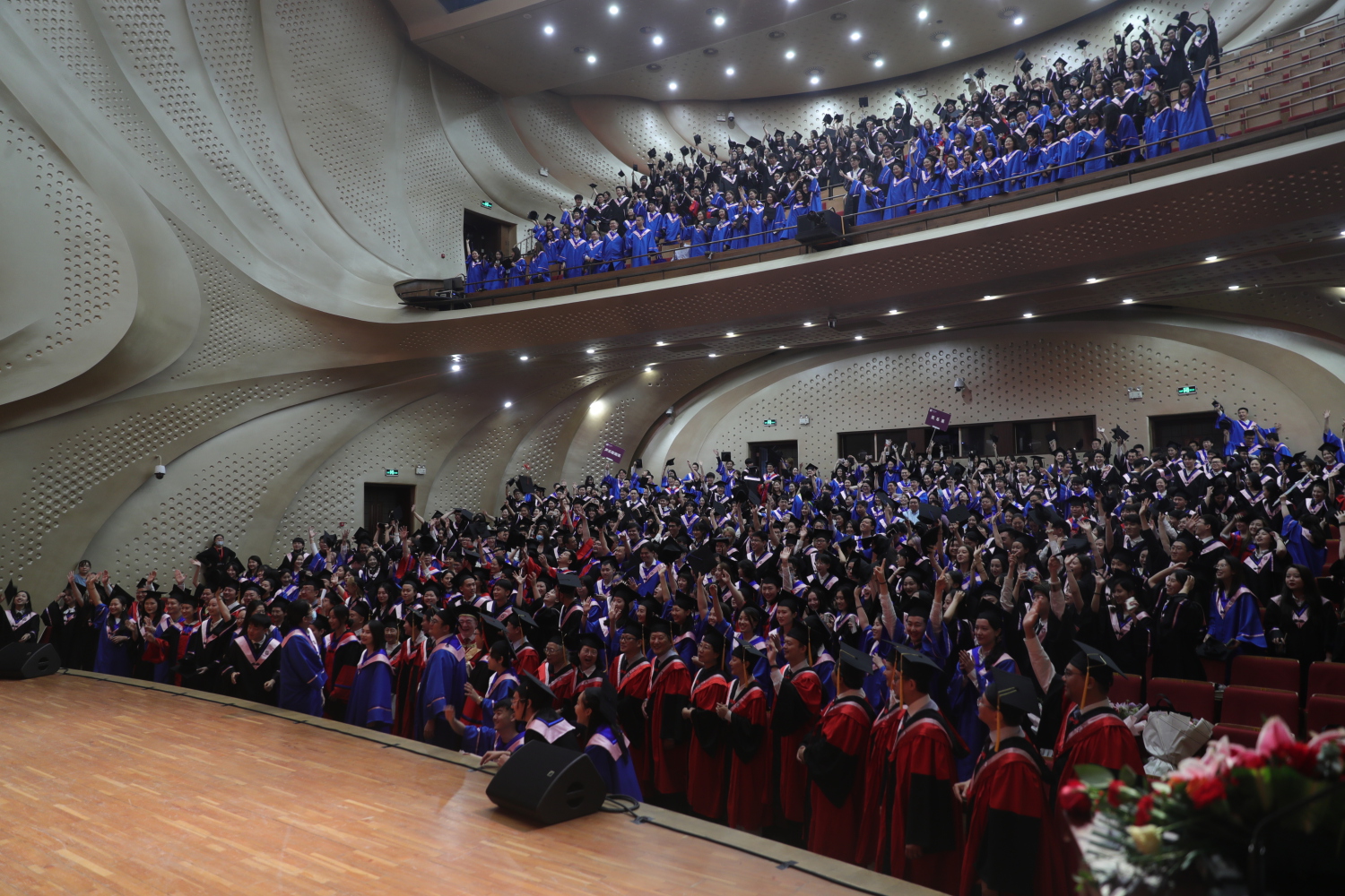 在《友谊地久天长》的音乐声中,全体授礼嘉宾与全体毕业生在歌剧音乐厅合影留念。