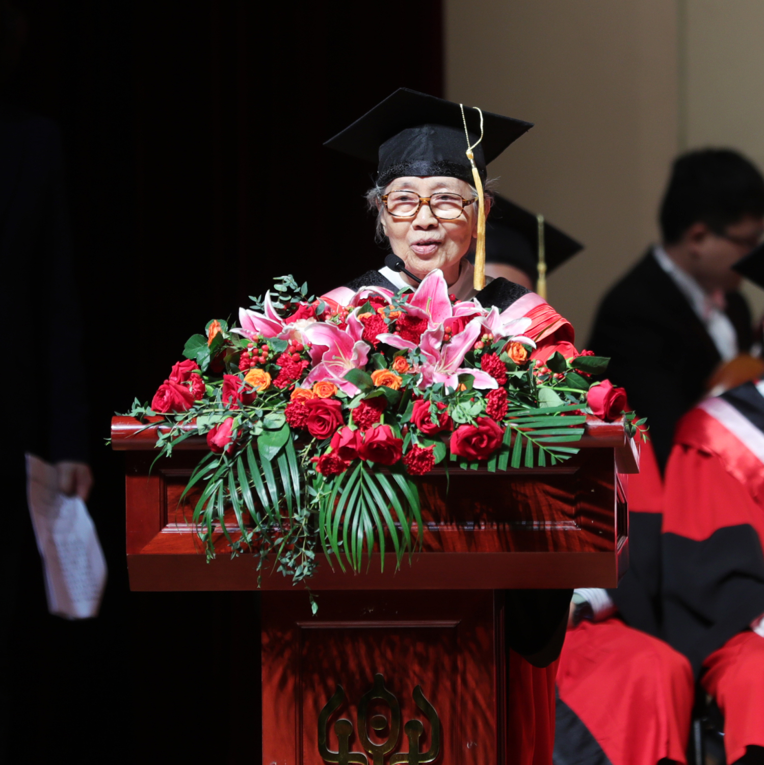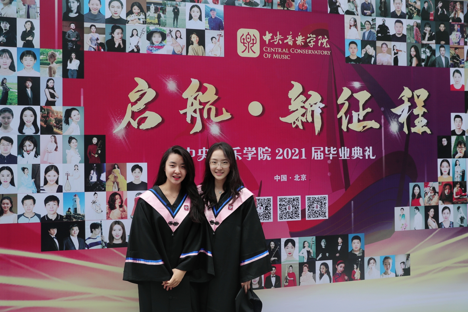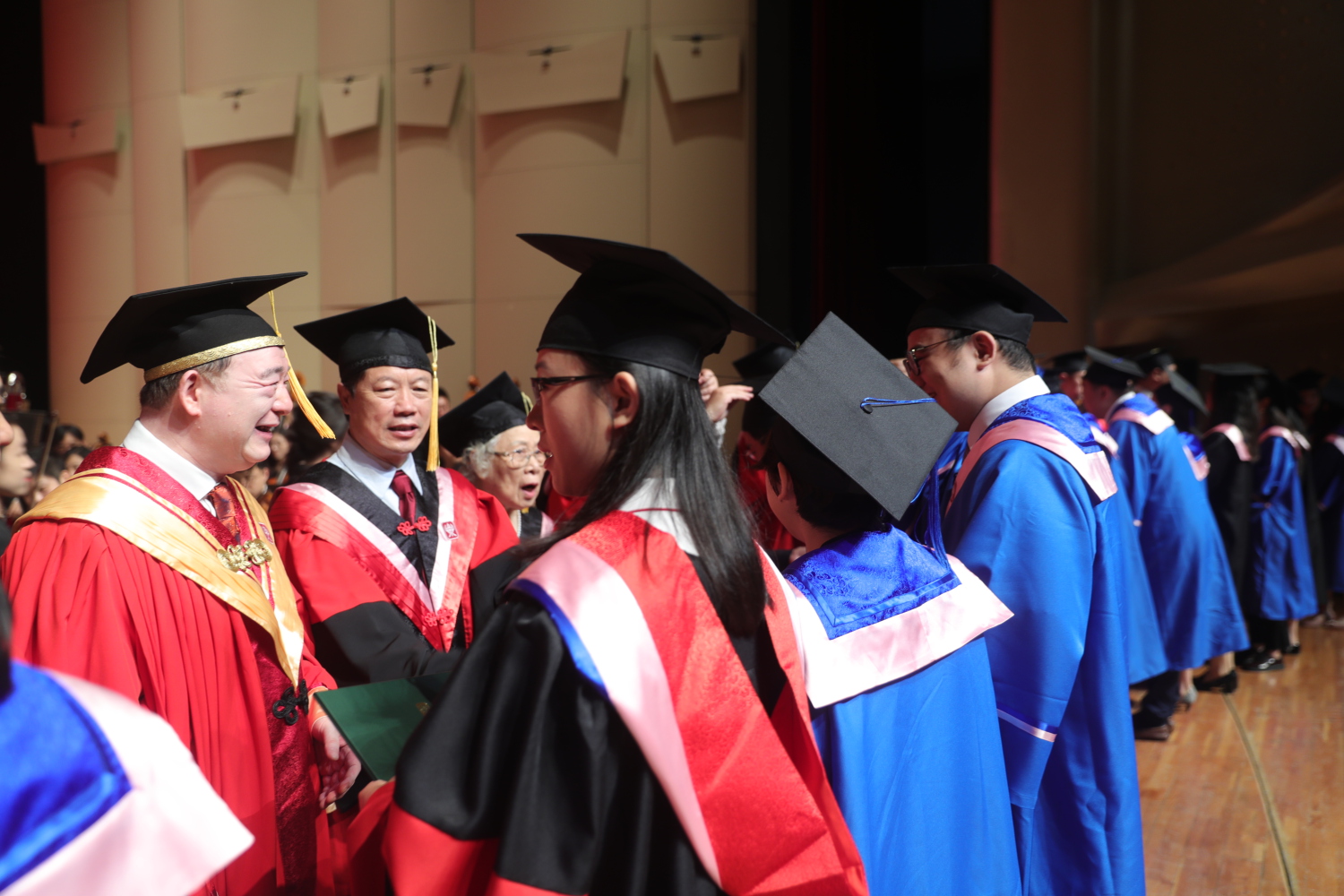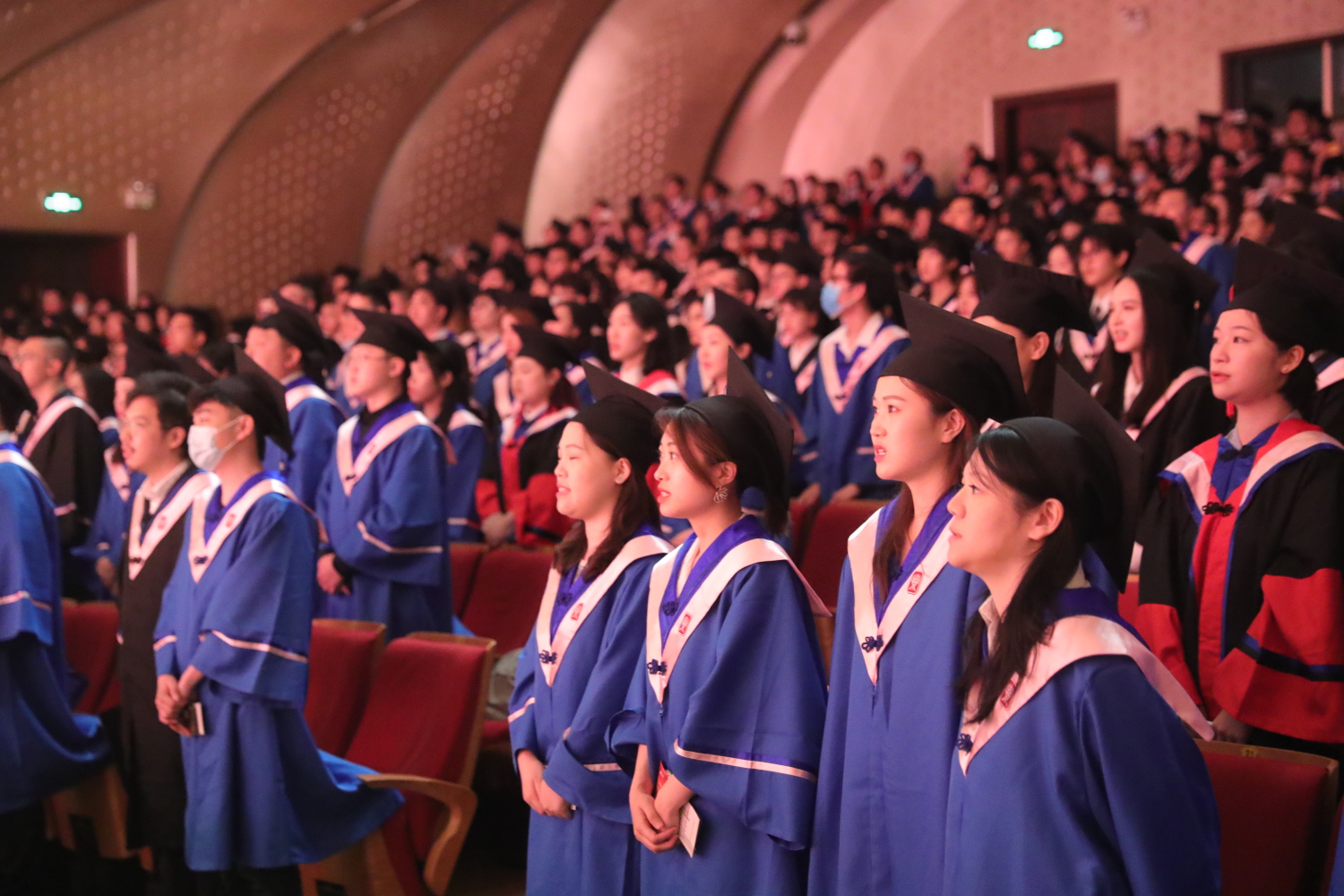 在《友谊地久天长》的音乐声中,全体授礼嘉宾与全体毕业生在歌剧音乐厅合影留念。