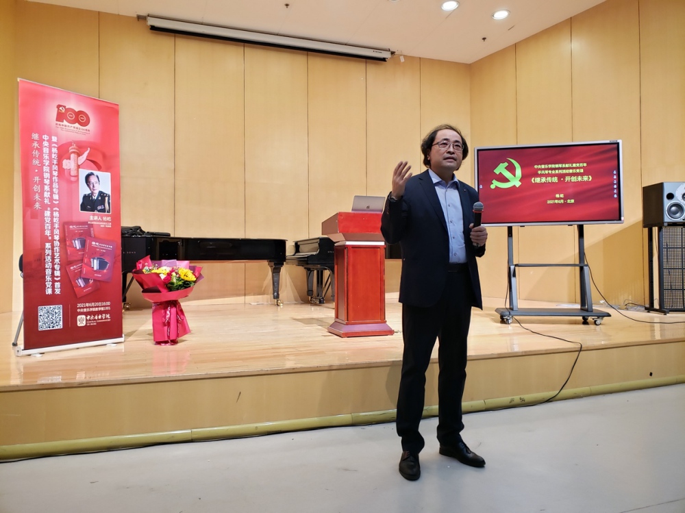 作为部队的文艺工作者,杨屹老师首先回顾了手风琴传入中国后在不同年代中扮演的重要角色,让师生们进一步明晰了手风琴伴随着拯救中华民族于危亡的民族解放运动,成为团结民众、鼓舞士气、打击敌人的最有力文艺宣传武器之一的历史过程。随后,他结合45年“为兵服务”的军旅音乐生涯与大量演出的视频、音频、图文资料,鼓励并期望在座的手风琴专业师生将自己的专长与时代伟业的发展同频共振,在为人民大众的服务中体现自己的价值,在中华民族伟大复兴的征程中留下自己坚实的足迹。