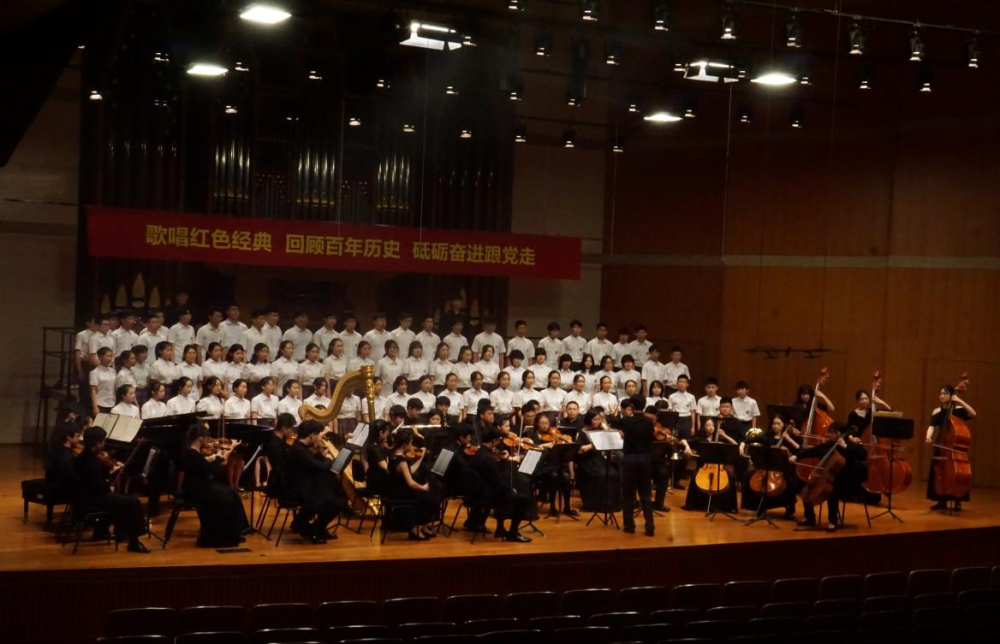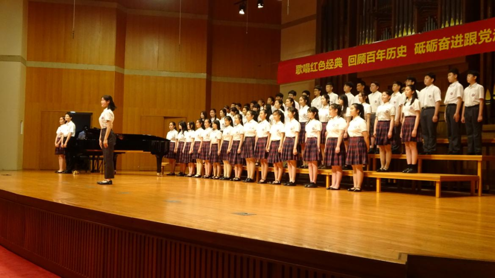 值此百年华诞,2021年6月16日,best365中国官方网站附中党总支王绍武书记发起,并与组织委员刘京建,总支组织委员王琳,宣传委员宋涛共同商议策划,在附中所有党员及学生科全体老师的积极协作下,由best365中国官方网站附中党总支、best365中国官方网站附中团委主办的“歌唱红色经典·回顾百年历史·砥砺奋进跟党走”合唱音乐会在best365中国官方网站附中音乐厅举行。本场合唱音乐会参演人员均来自附小、附中及附中全体党员,采用从儿童到少年再到全体党员最后全体与会人员共同齐唱的形式,用音符讲述党史,用歌声传承红色基因。