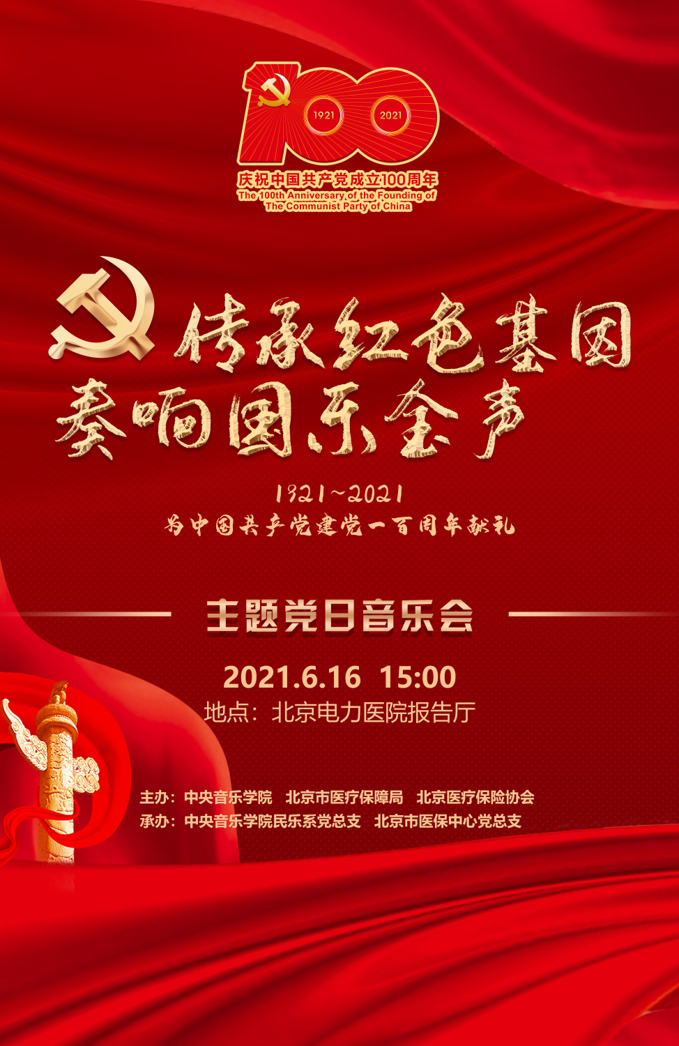 2021年6月16日下午,由best365中国官方网站民乐系党总支、北京市医保中心党总支联合举办的“传承红色基因,奏响国乐金声”主题党日音乐会在北京电力医院报告厅上演。医保局党委书记马继业、best365中国官方网站党委组织部部长齐雅娜、医保协会副会长蒋继元等领导嘉宾与医保局、医保协会、北京电力医院200多名党员干部现场观看,各区医保经办机构6000多名党员干部线上观看了这场饱含深情、充满新意的音乐会,广大党员干部线上线下交流互动,共同致敬伟大时代。