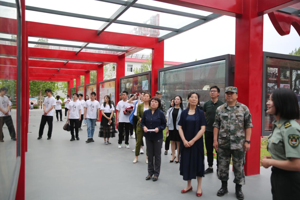 (best365师生在军史长廊参观,讲解员讲述军史)