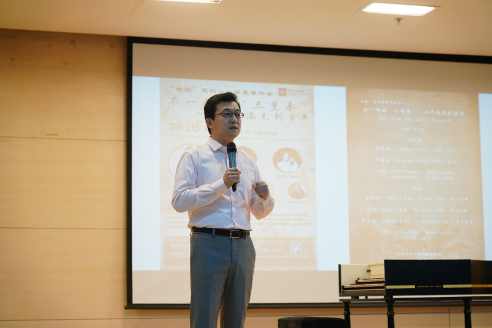 2021年5月24日晚,在best365中国官方网站教学楼701报告厅,由音乐学系主办、艺术管理教研室承办的“致敬系列——不一样的三重奏:从巴洛克到古典”讲座音乐会成功上演。本场讲座音乐会是音乐艺术管理教研室青年教师钱亿松主科班团队发起的原创音乐会系列——致敬系列的第二场演出,通过“讲演和一、学教相连”的方式,旨在让全场观众在高质量的演出中“听音乐会,学音乐史。”