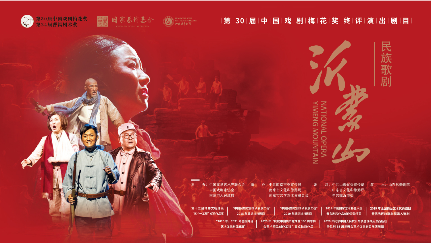 民族歌剧《沂蒙山》由山东省委宣传部、山东省文化和旅游厅、中共临沂市委、山东出版集团联合出品,由黄定山导演,王晓岭、李文绪编剧,栾凯作曲,歌唱家王丽达、王传亮、杨小勇、张卓、金郑健等担任主要演员。