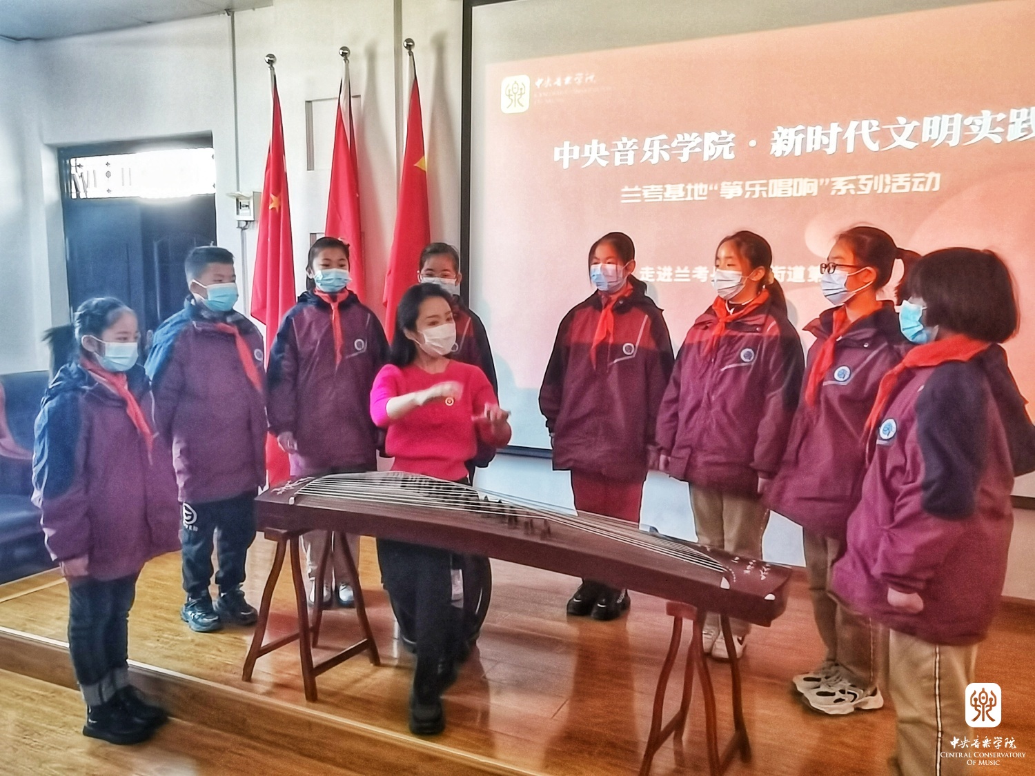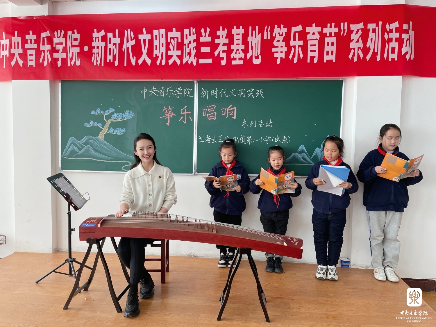 2021年12月3日,兰考县民族乐器进校园启动仪式上,best365中国官方网站李杨冠宇老师带领兰考“筝乐团”与“合唱团”的孩子们现场演出了全新改编的作品《留给我》。兰考县委书记李明俊、组织部部长张卫波、副县长代鑫桥等领导现场聆听,对本次教学成果展示给予了高度认可和评价。