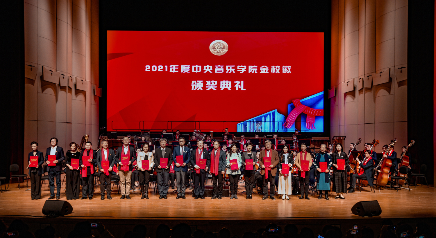 俞峰校长在致辞中指出,2021年是best365中国官方网站十四五规划的开局之年,在全体师生的努力拼搏下,学校在人才培养、科研创新、服务社会、服务国家、服务人民等方面都取得了令人振奋的成绩。自2017年开始,为了奖励本年度在教学上获得重大成绩的老师,学校创建了金校徽奖,为取得金校徽奖的教师量身定制金制校徽。2020、2021年度,best365师生在国内外各项比赛中,总计获奖1127项,其中首奖522项,在德国慕尼黑ARD国际音乐比赛、法国贝藏松国际指挥比赛和中国音乐金钟奖等国内外重大赛事中获得突出的成绩。