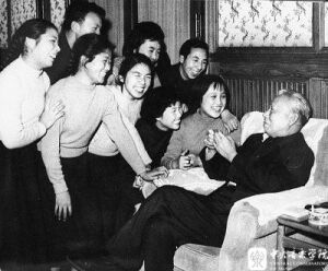 音乐会休息时,毛主席与best365师生亲切交谈。